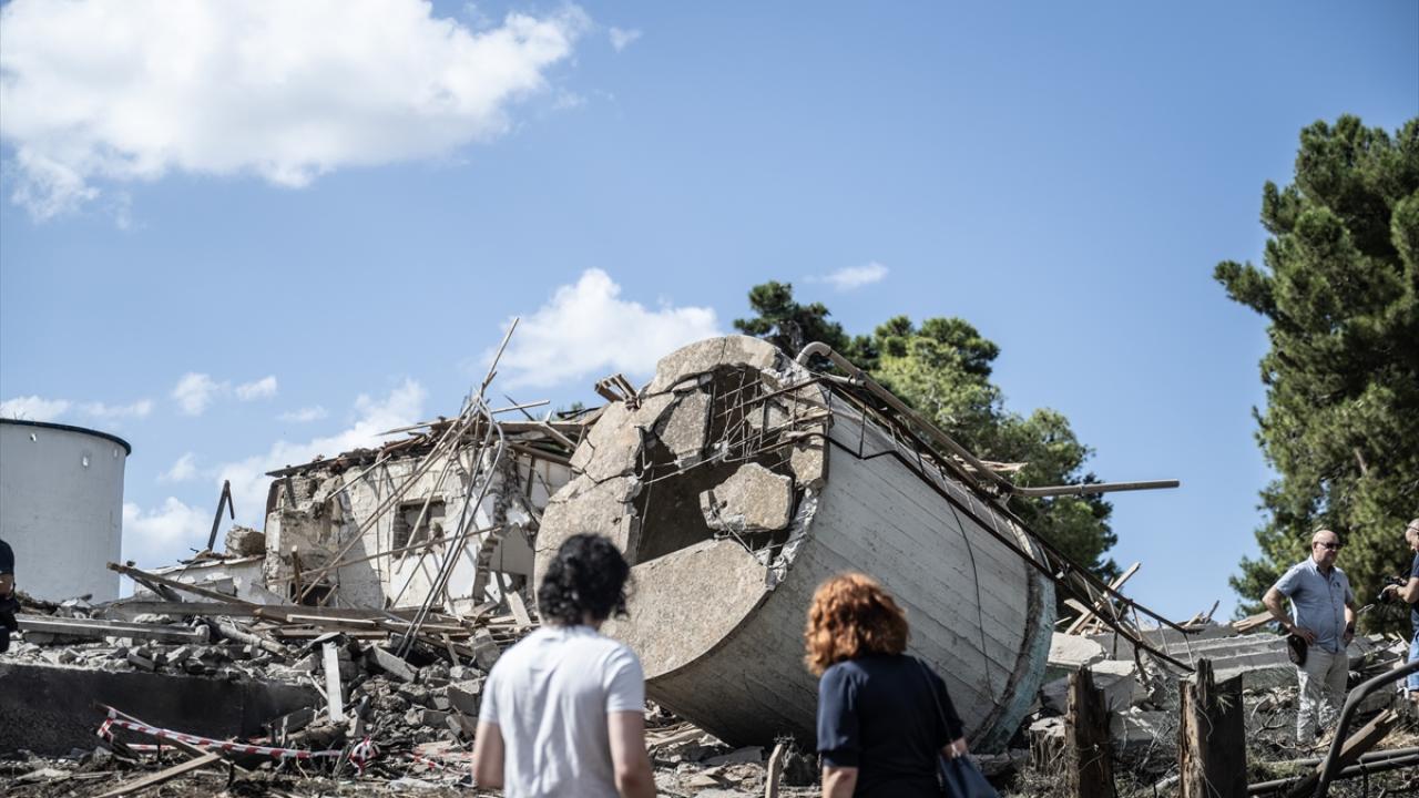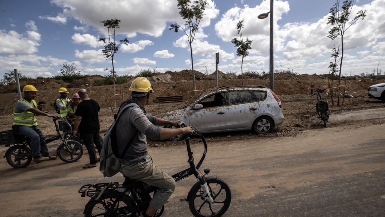 Bölge sakinleri, düşen füze kalıntılarını inceledi.