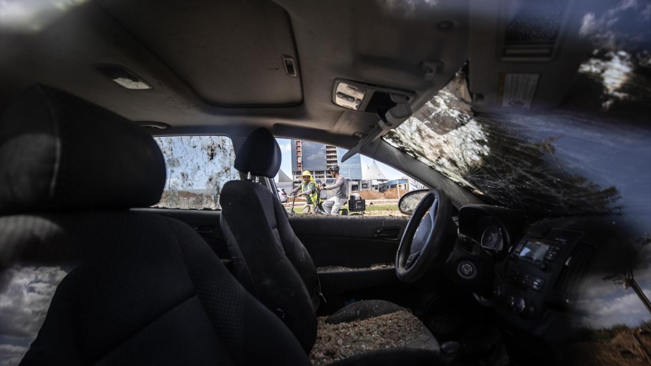 Saldırı sonucu bölgedeki araçlarda hasar oluştu.