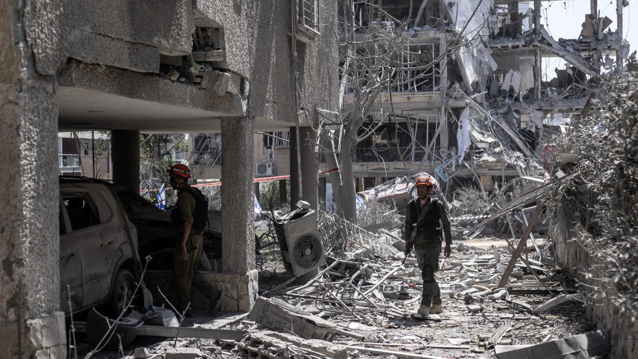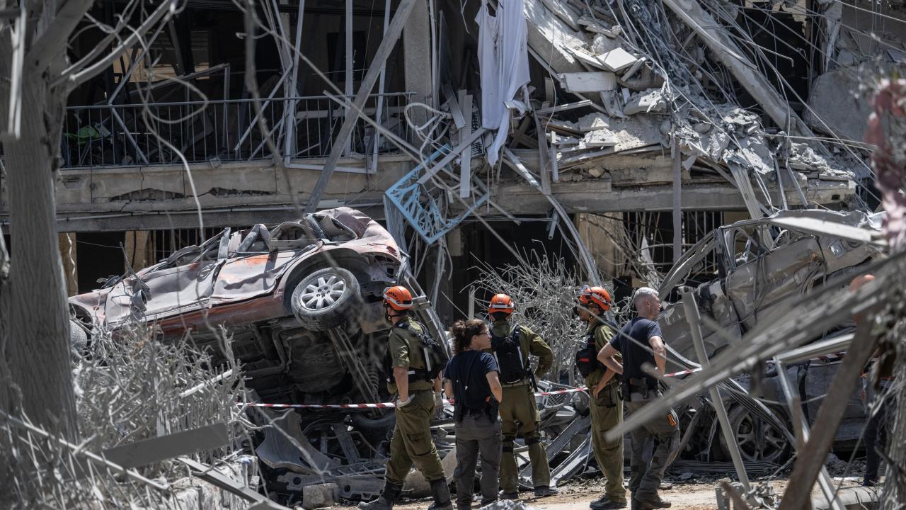 İsrail'in İran'a yönelik geniş çaplı saldırılarının başlamasının ardından İran ordusunun yaptığı misilleme saldırılarında, Tel Aviv yakınlarındaki Ramat Gan bölgesinde çok sayıda bina yıkıldı ve birçok araç kullanılamaz hale geldi.