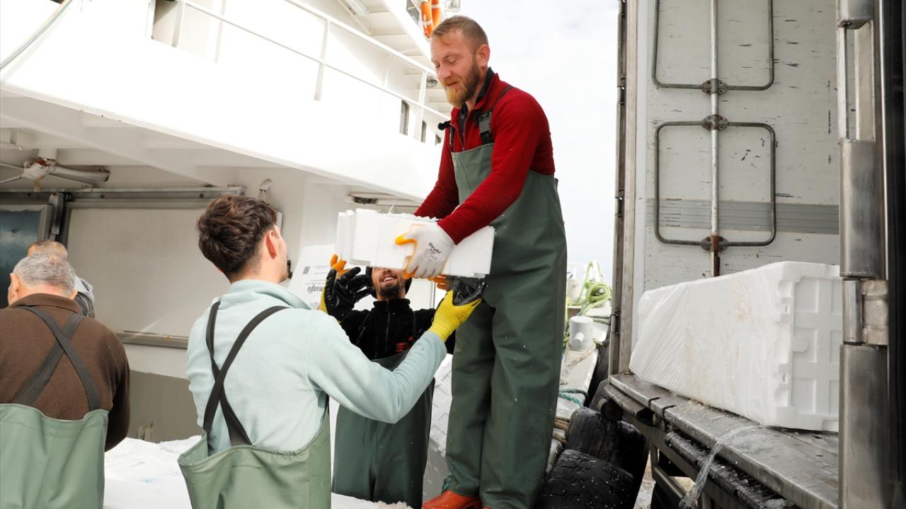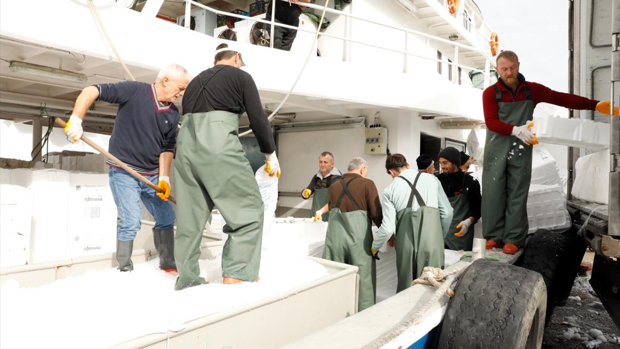 Samsun`da bol av sayesinde bereketli bir sezon geçiren balıkçılar, Karadeniz`de avladıkları palamutla dolu gemilerle limana dönüyor.
