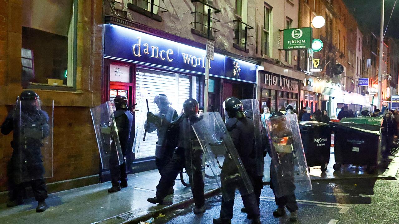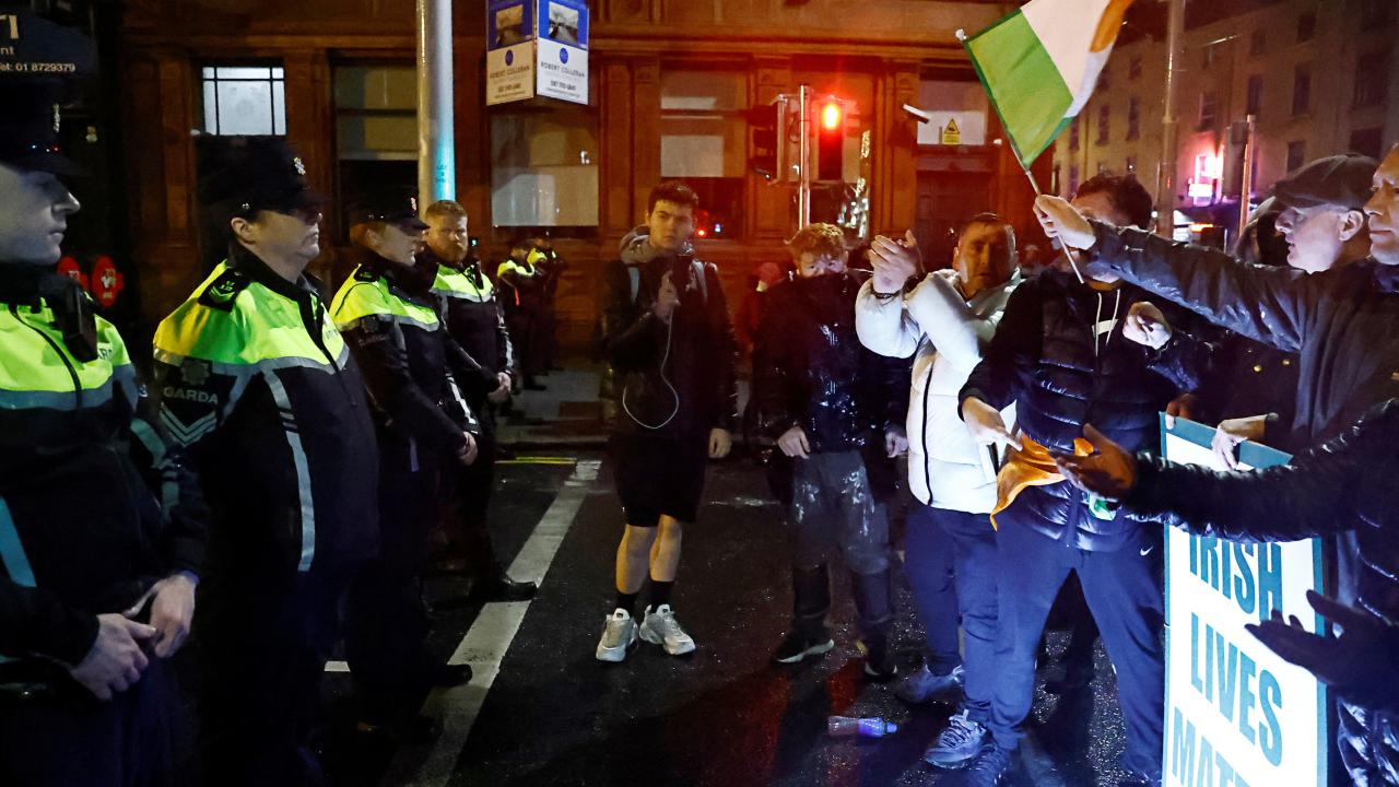 Dublin`de 5 kişinin bıçaklanması olayının ardından bıçaklı saldırının meydana geldiği bölge yakınlarında toplanan protestocular ile İrlanda polisi arasında gerginlik çıktı.