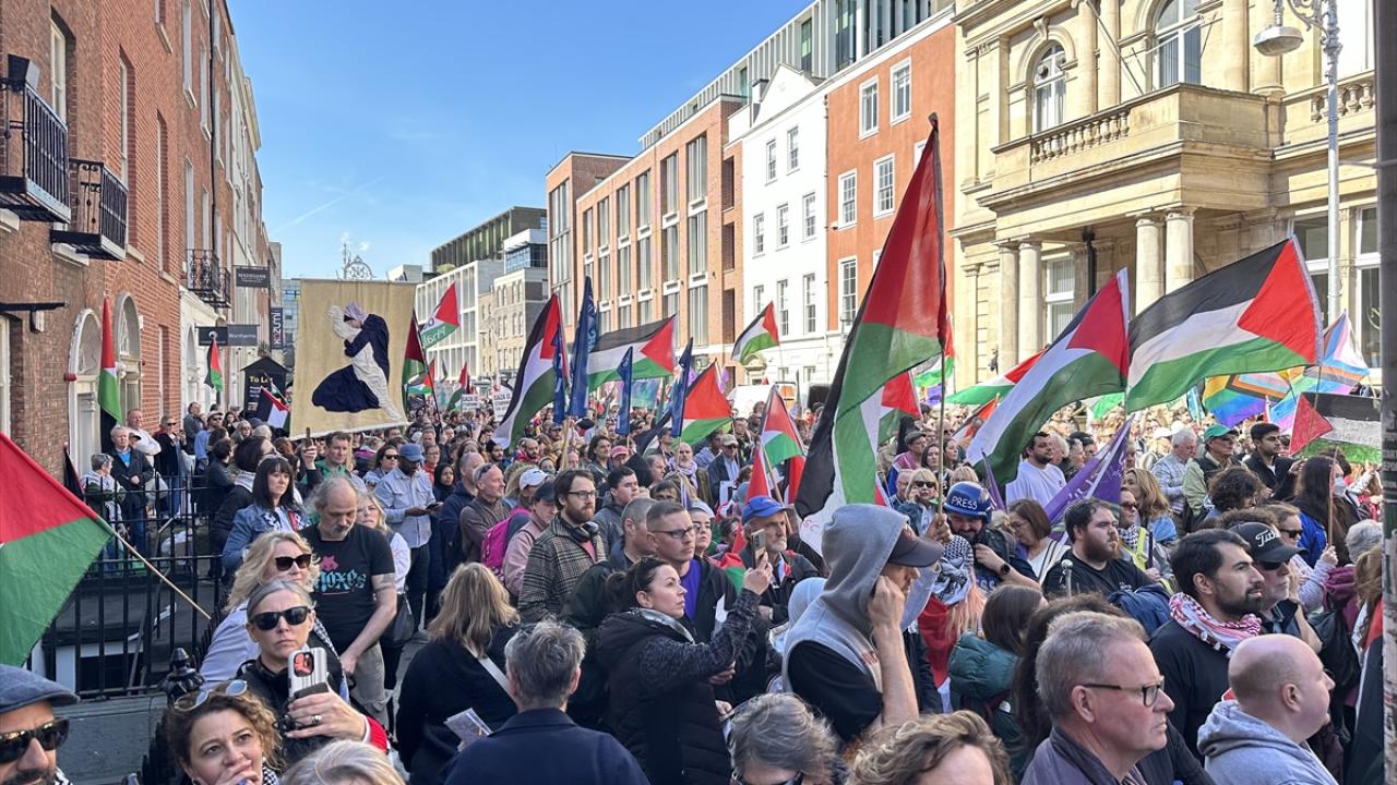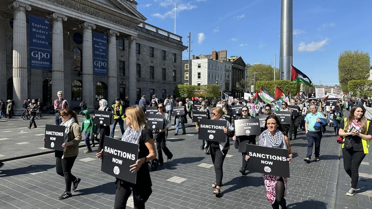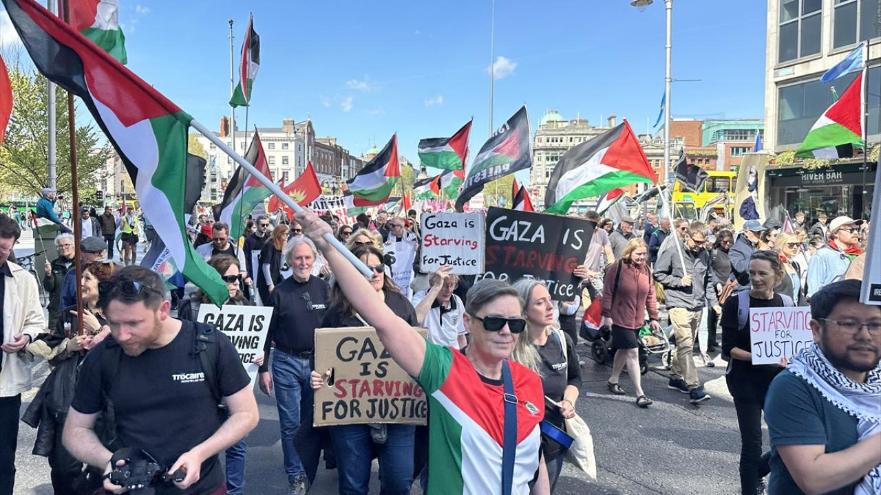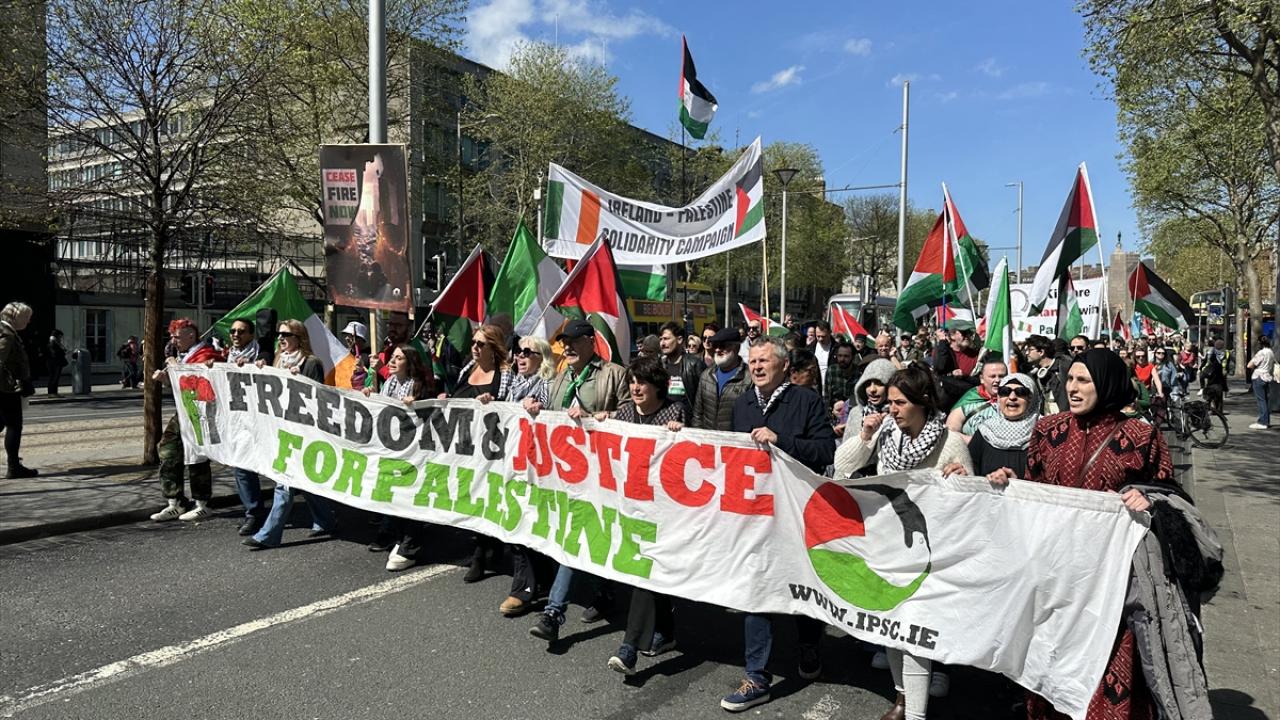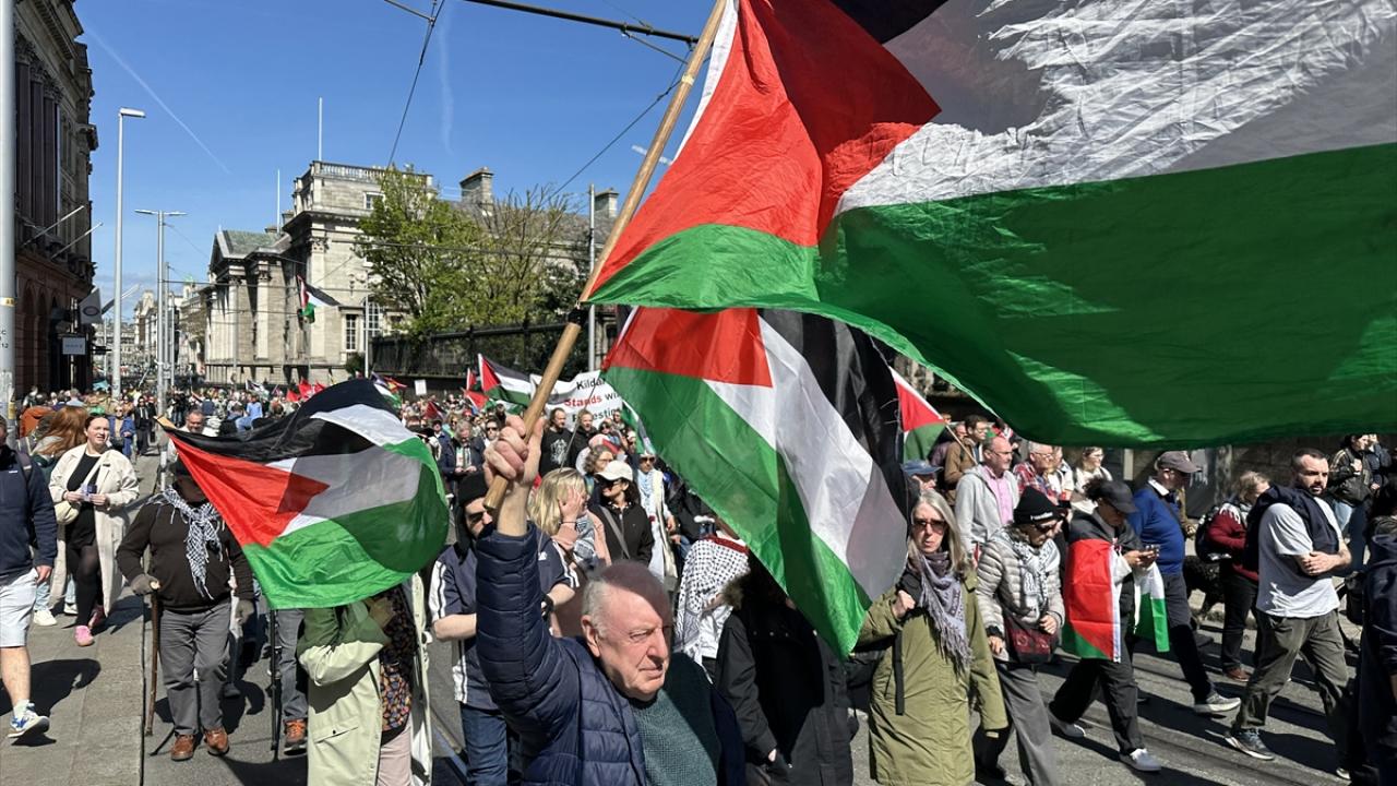İrlanda'nın başkenti Dublin'de Filistin'e destek gösterisi yapıldı. İrlanda Filistin Dayanışma Derneğince "Garden of Remembrance" Parkı'nda düzenlenen gösteriye yüzlerce kişi katıldı.