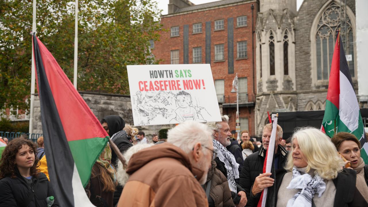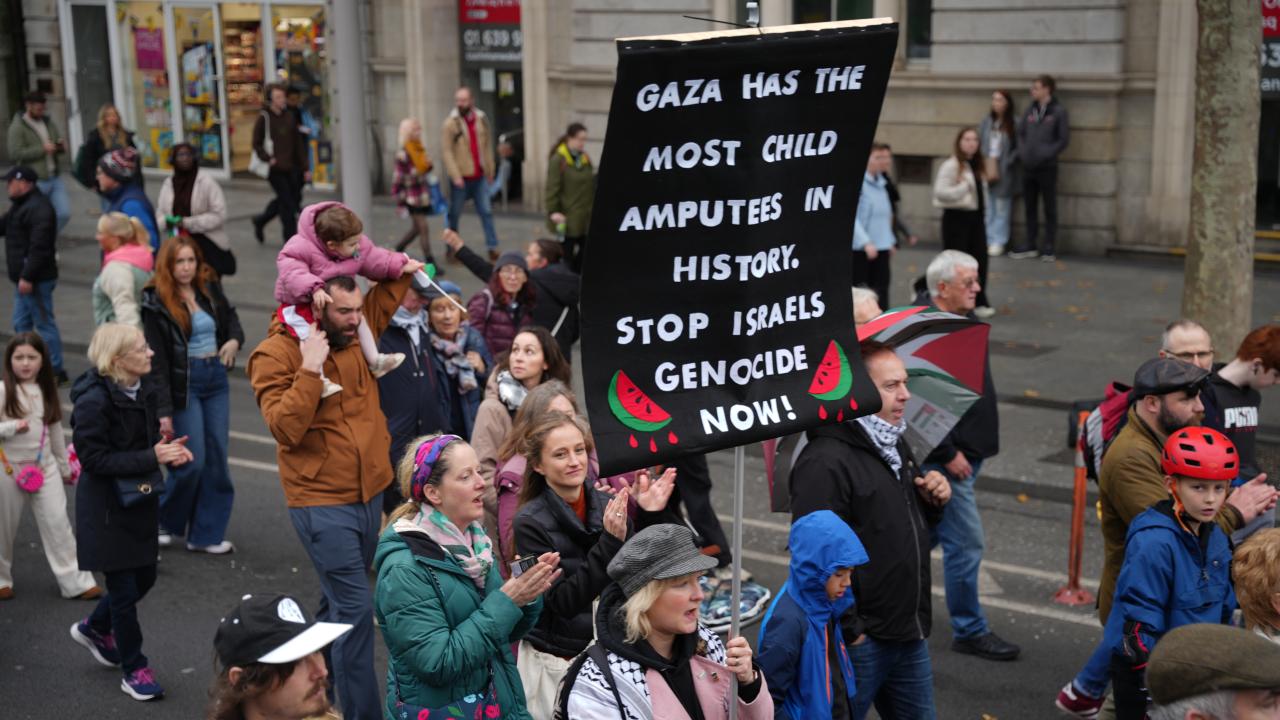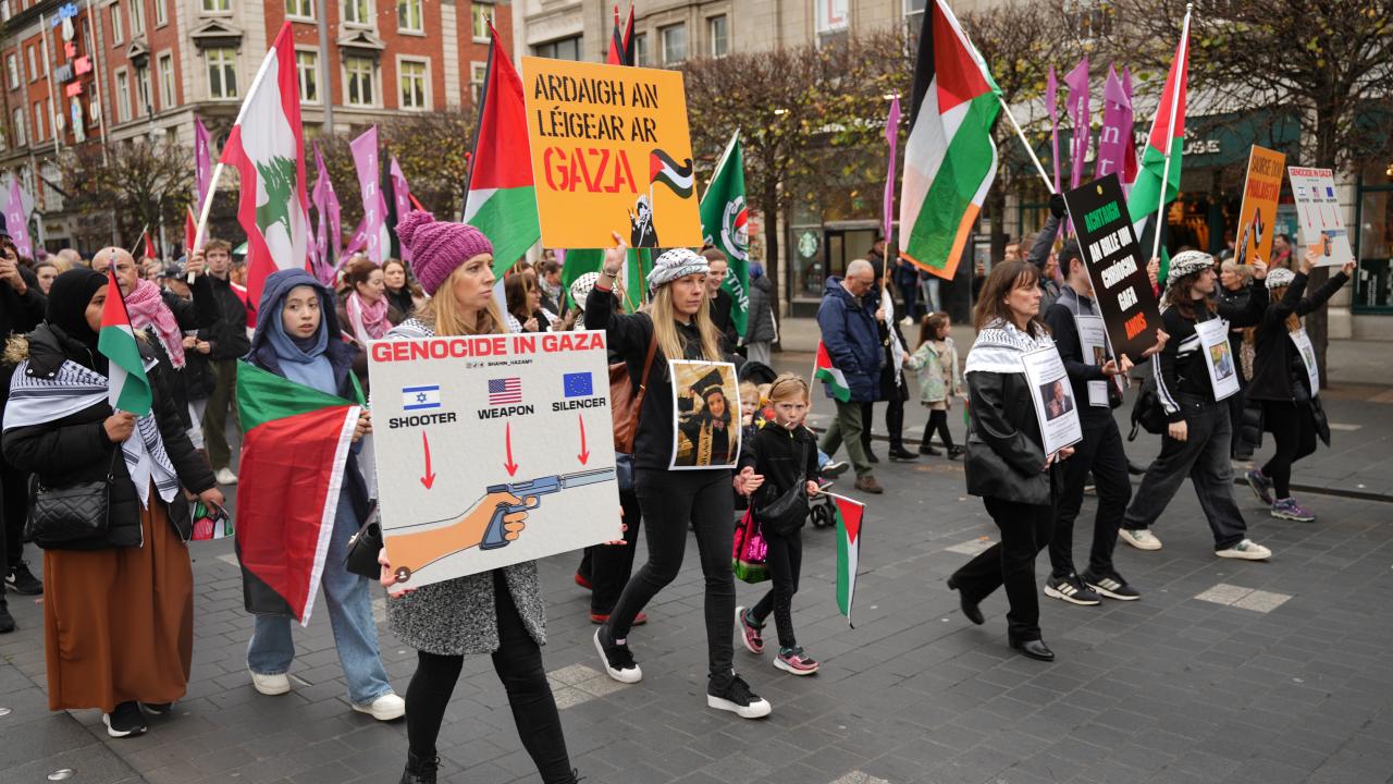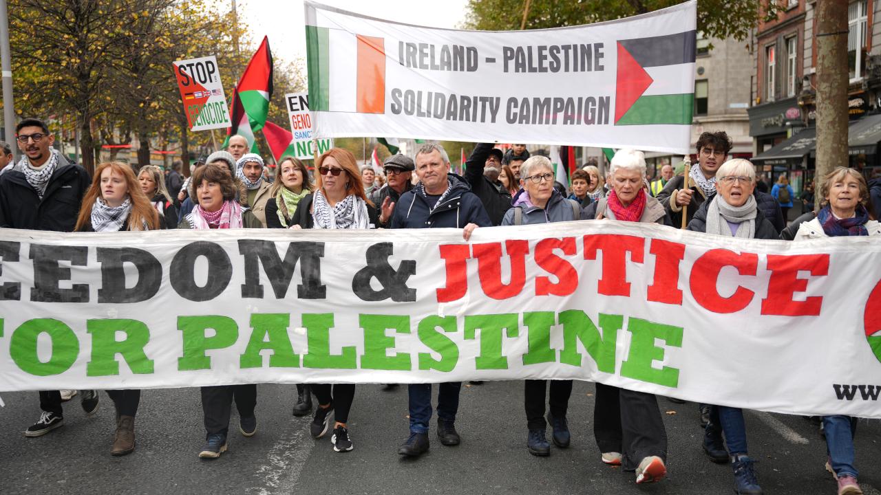 Yürüyüşte, Filistin halkına destek mesajları verildi, Gazze`de yaşanan insani krizin sona erdirilmesi ve adalet çağrıları yinelendi ve İrlanda hükümetine daha güçlü dayanışma çağrısında bulunuldu.
