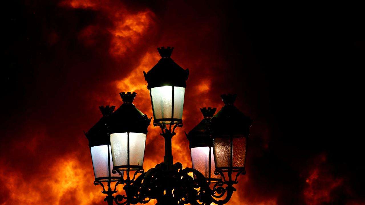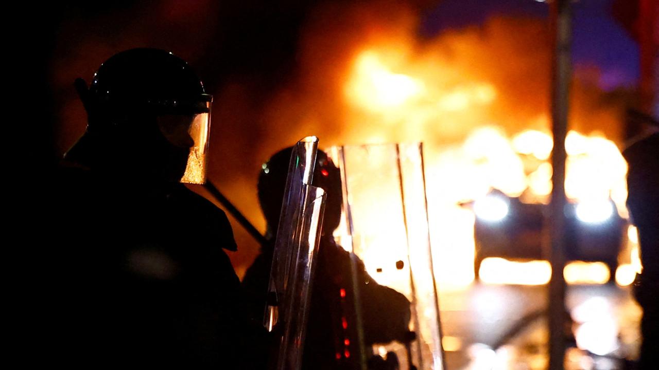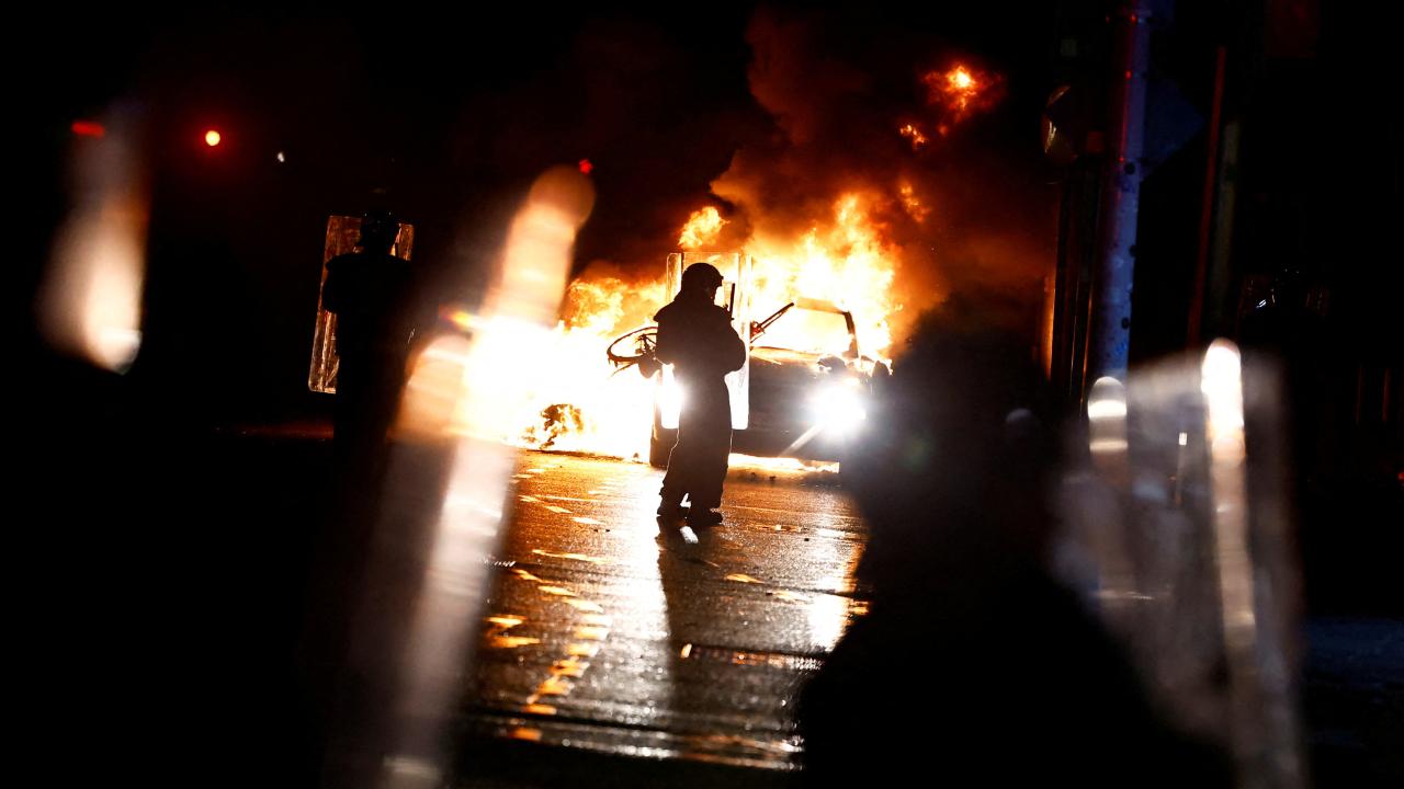 Çift katlı bir otobüs, tramvay ve polis aracı ateşe verildi.