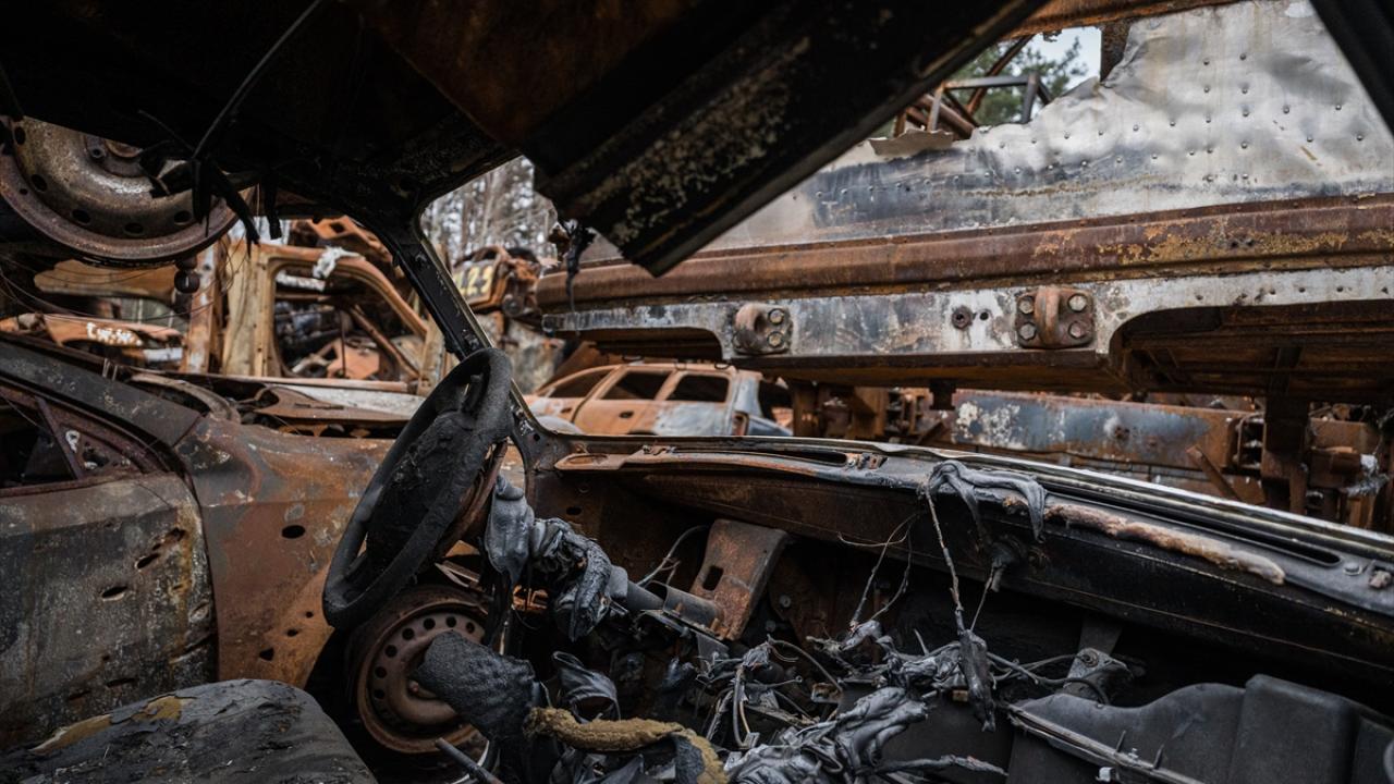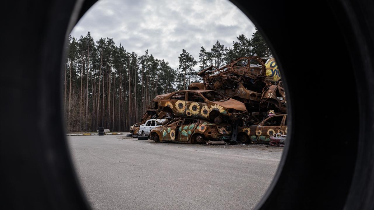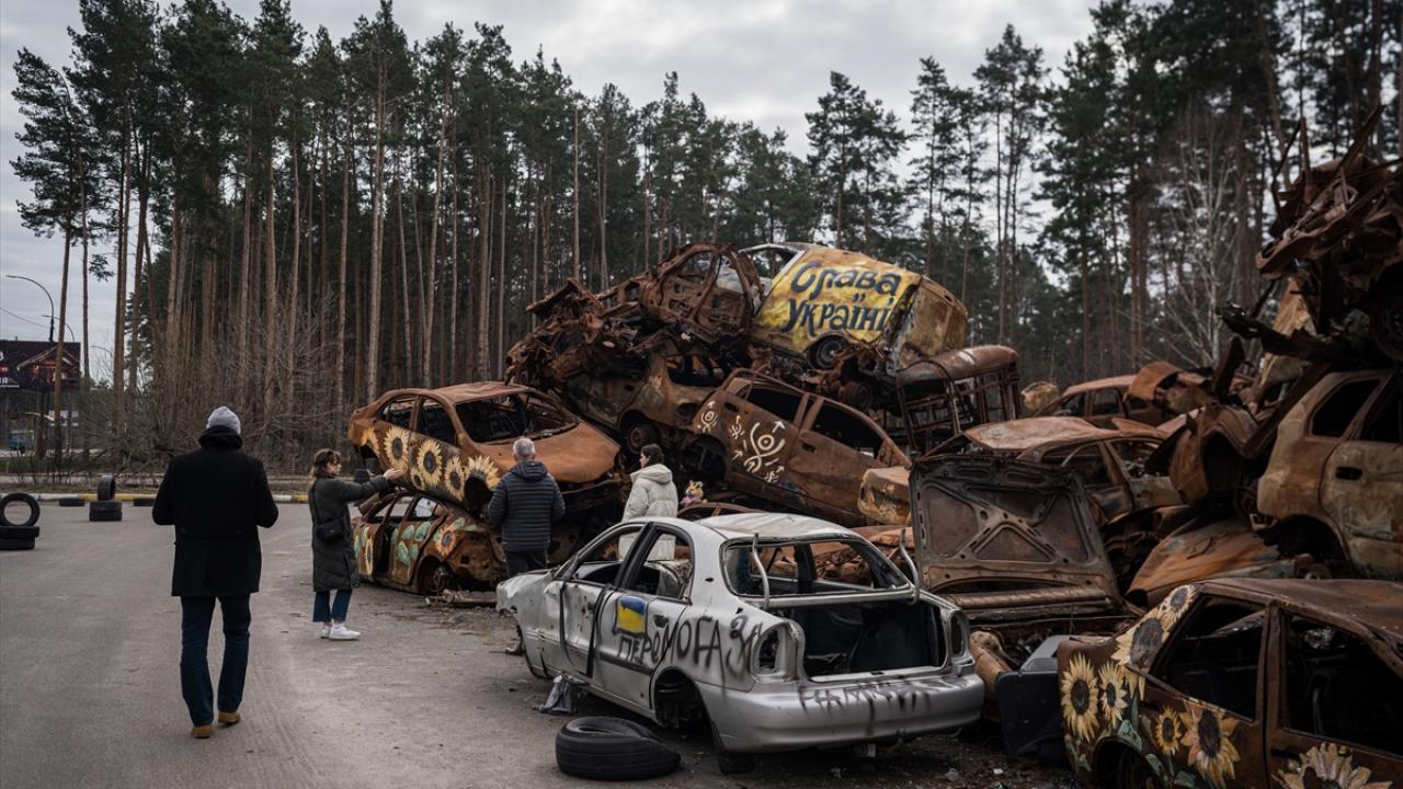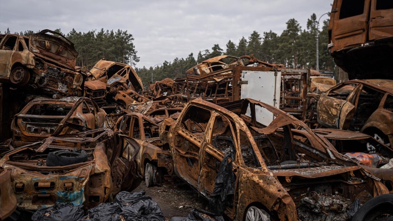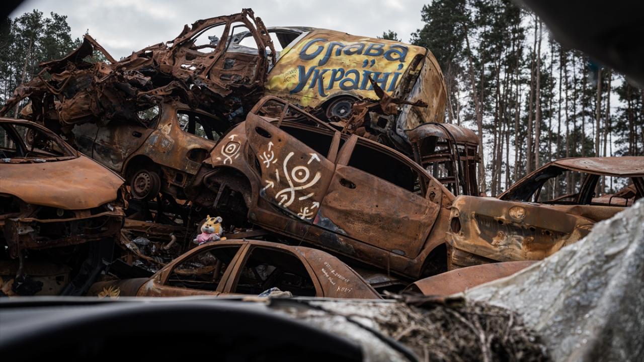 Rusya-Ukrayna savaşı 2. yılını geride bırakırken, Ukrayna'nın en çok hasar gören şehirlerinden biri olan İrpin'de, Rus saldırılarını sonucunda kullanılamaz hale gelen kentteki yapılar ve araçlar, savaşının simgesi haline gelerek hayatını kaybeden askerlerin ve vatandaşların anıldığı anıtlar haline geldi.