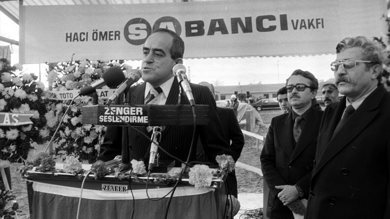 Sabancı, 12 Aralık 1981`de Sabancı Vakfı tarafından yaptırılacak olan kız öğrenci yurdunun temel atma törenine katıldı. (Arşiv)