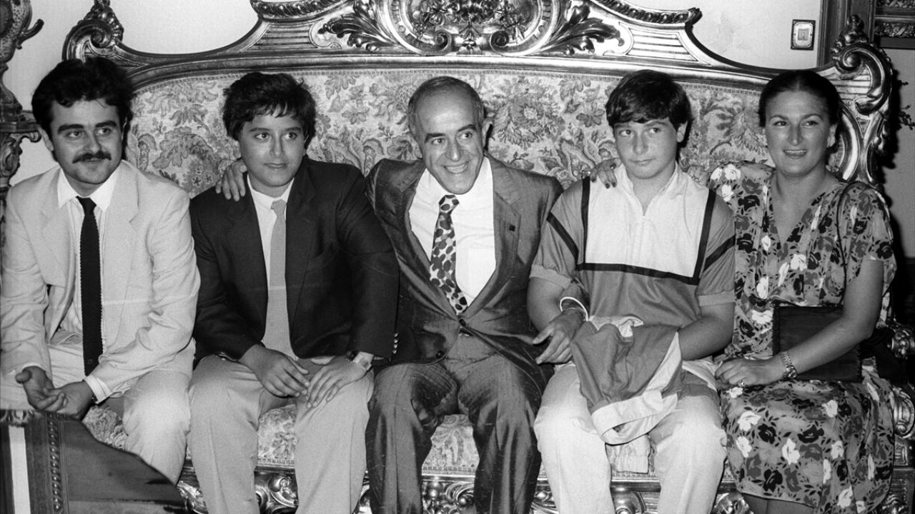 Sabancı Holding Yönetim Kurulu Başkanı Sabancı (ortada), 31 Temmuz 1984`de genç Sabancıları basına tanıttı. (Arşiv)