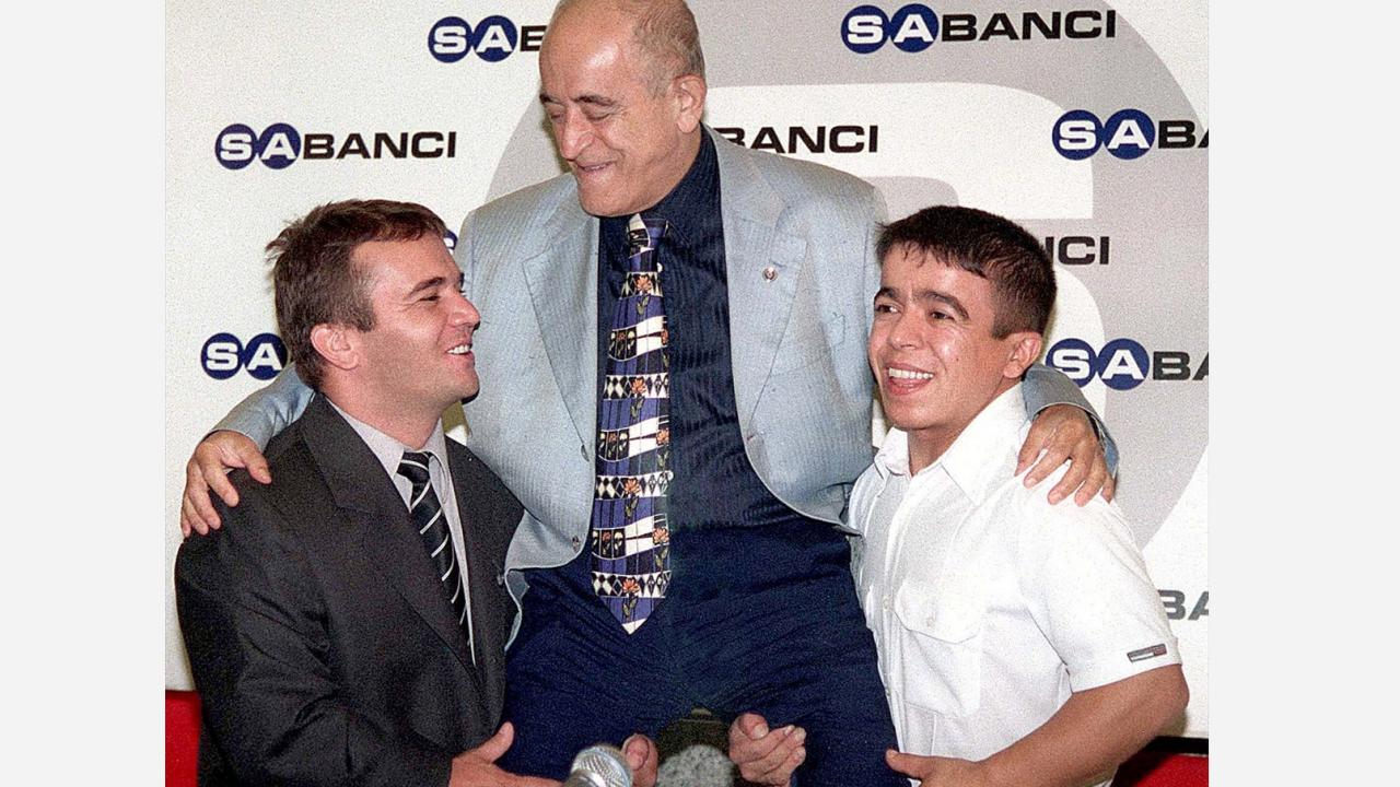 15 Nisan 2004`de Antalya`da düzenlenecek olan Dünya Büyükler Halter Şampiyonası öncesinde, Sabancı Center`de basın toplantısı düzenlendi. Toplantı sonunda, iş adamı Sakıp Sabancı, Dünya ve Olimpiyat Şampiyonu Halterci Halil Mutlu ve Dünya Halter Federasyonu Başkanı Naim Süleymanoğlu tarafından havaya kaldırıldı. (Arşiv)
