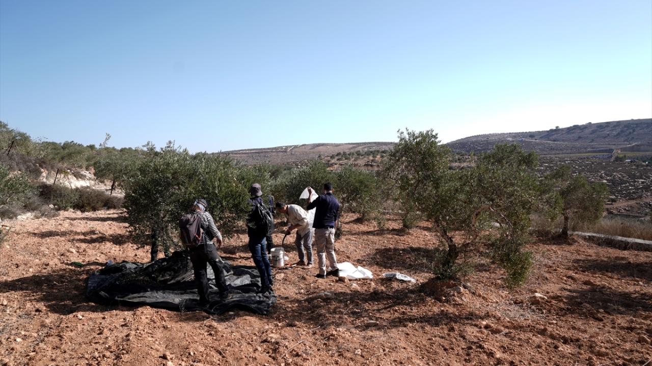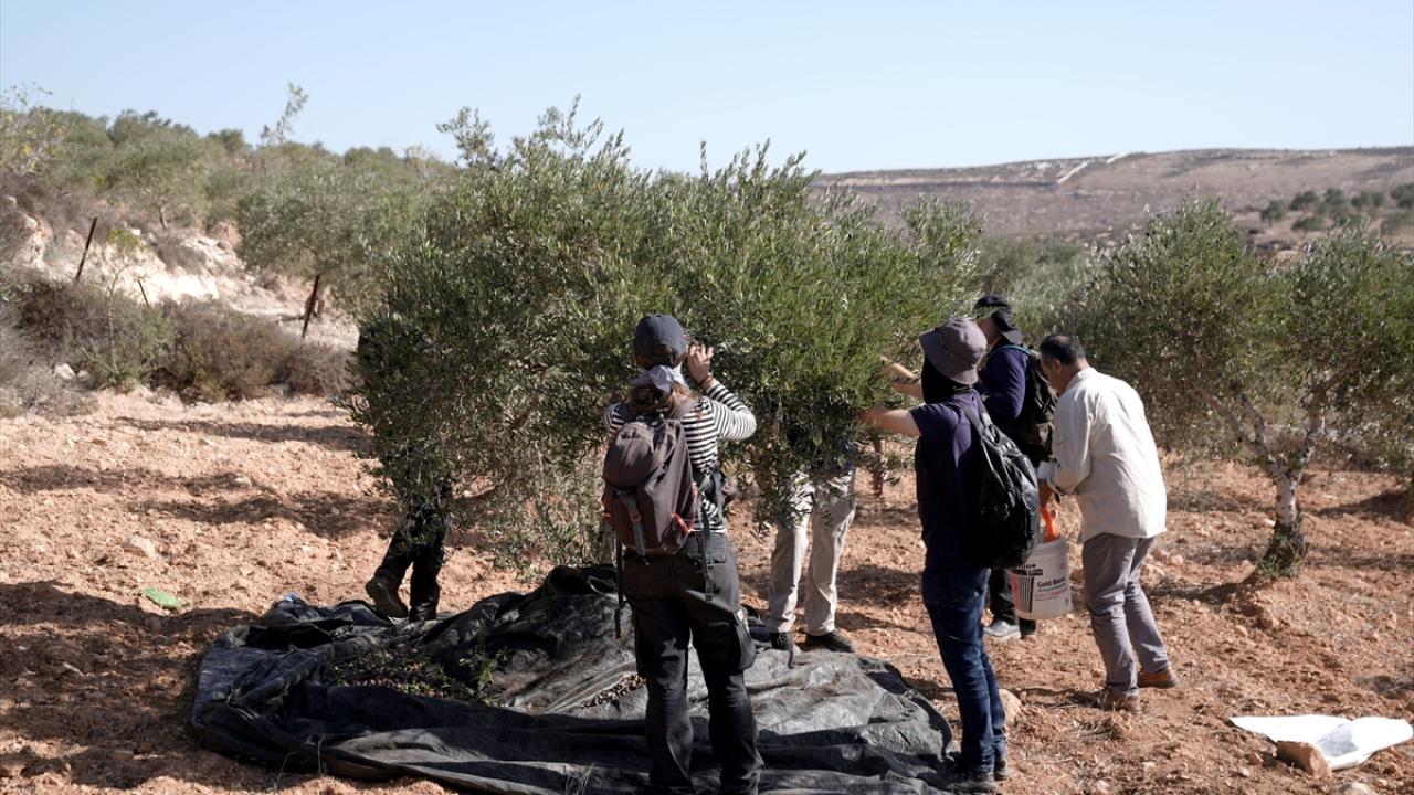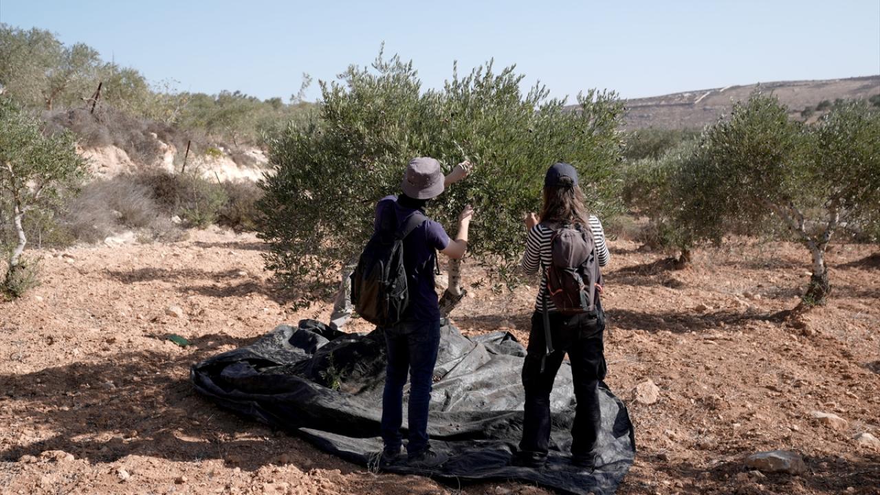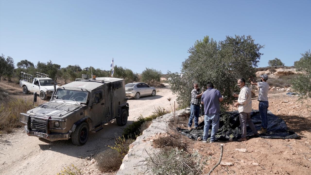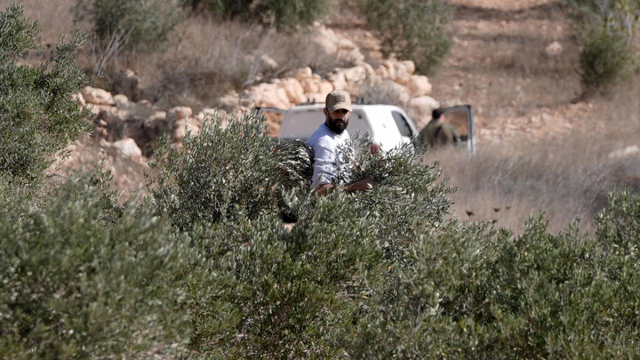 İşgal altındaki Batı Şeria’da İsrail askerlerinin ve Filistin topraklarını gasbeden İsraillilerin saldırılarına rağmen Filistinli çiftçiler, Ramallah kentine bağlı Turmus Aya köyünde zeytin hasadına devam ediyor.