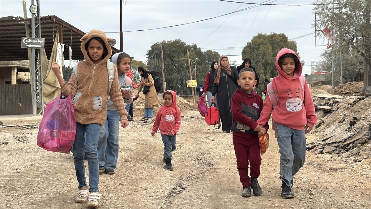 Evlerini terk etmek zorunda Filistinli aileler, başka bölgelere göç etti.