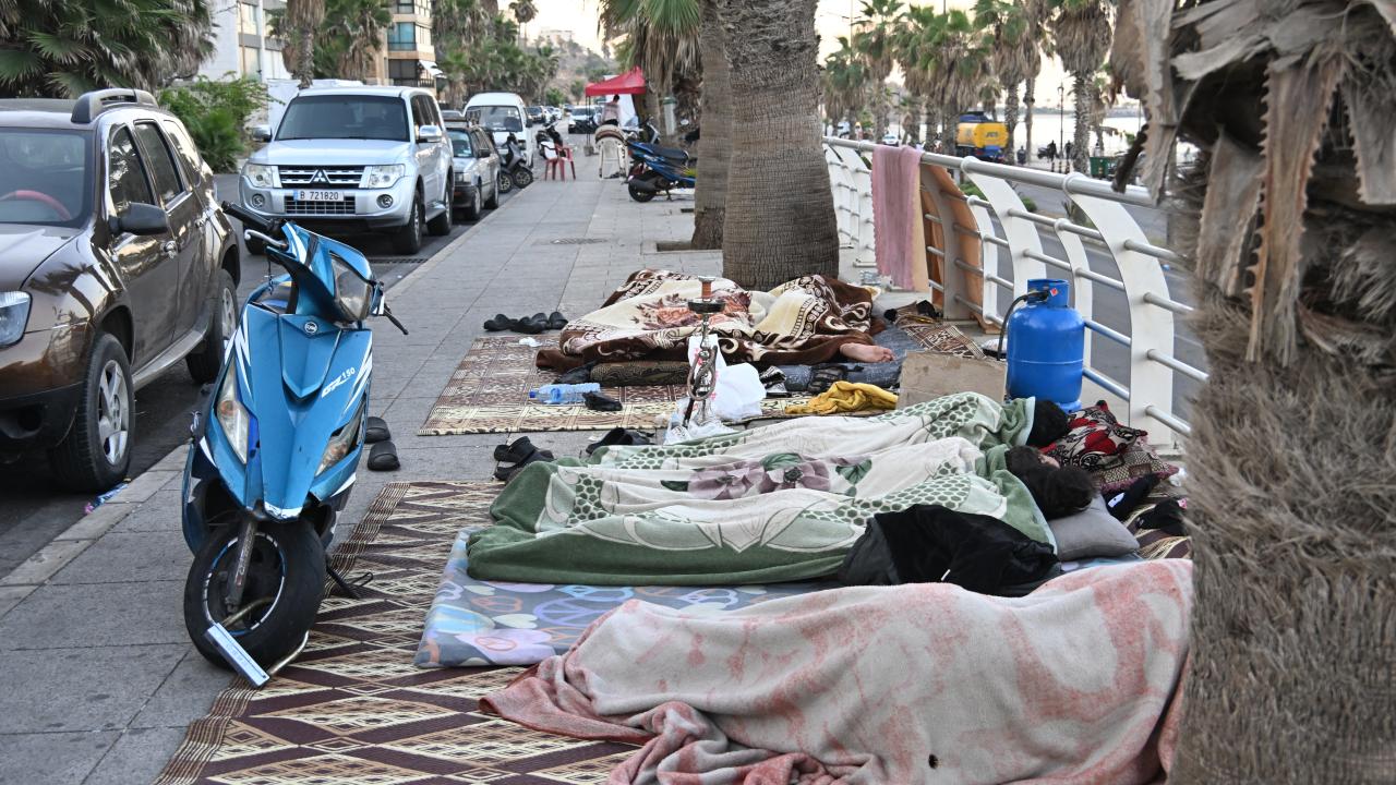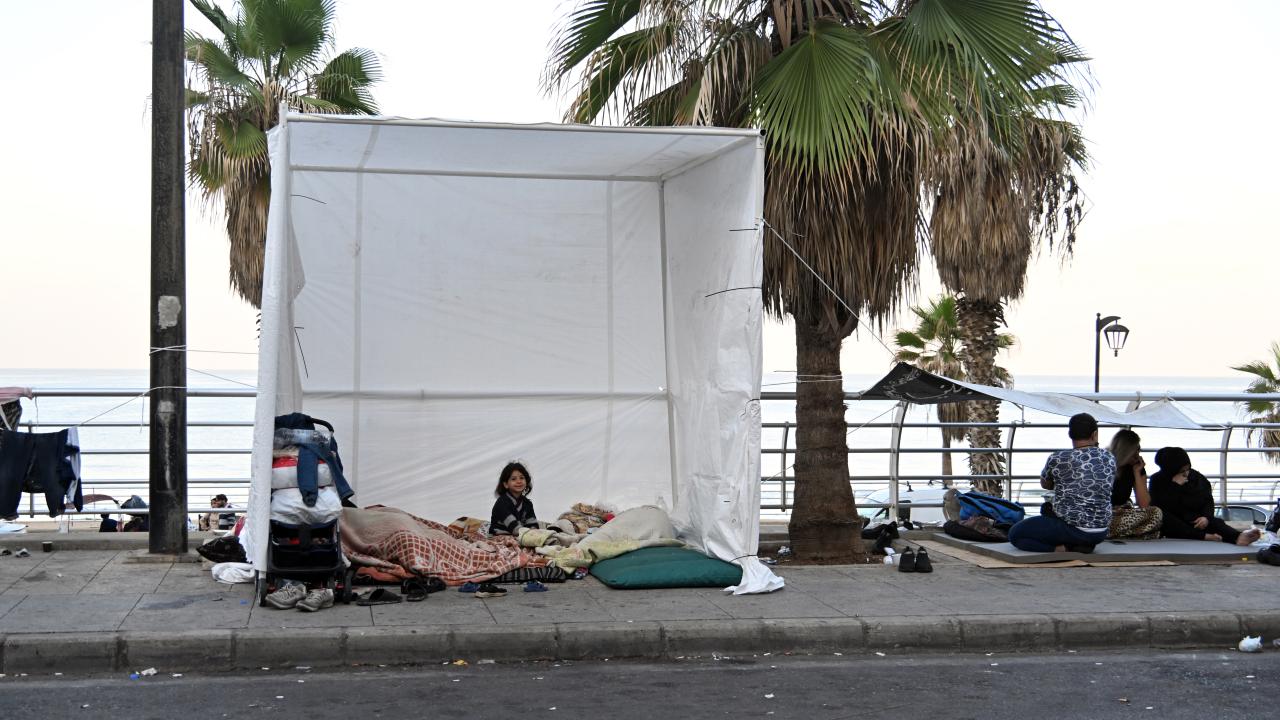 Saldırılar nedeniyle başkentin güneyindeki Dahiye bölgesinden kaçanlar, yanlarına alabildikleri eşyalarıyla Beyrut’un diğer bölgelerindeki park, açık alanlara ve sahil kenarlarına sığındı.