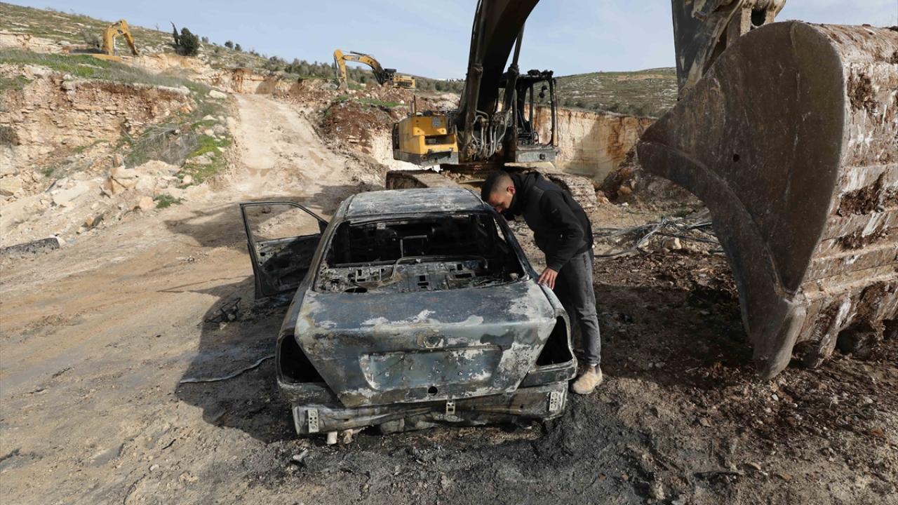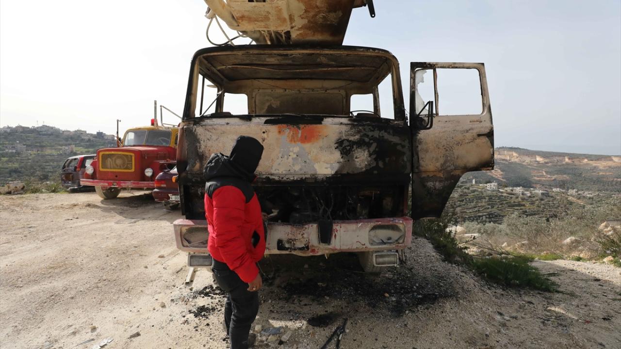 Filistin topraklarını gasbeden İsrailliler, Batı Şeria’nın kuzeyinde yer alan Nablus kentine bağlı Orif köyüne düzenledikleri saldırıda, bölge halkına ait bir aracı ve 3 iş makinesini ateşe verdi. Köy sakinleri, araçlarında oluşan hasarı inceledi.