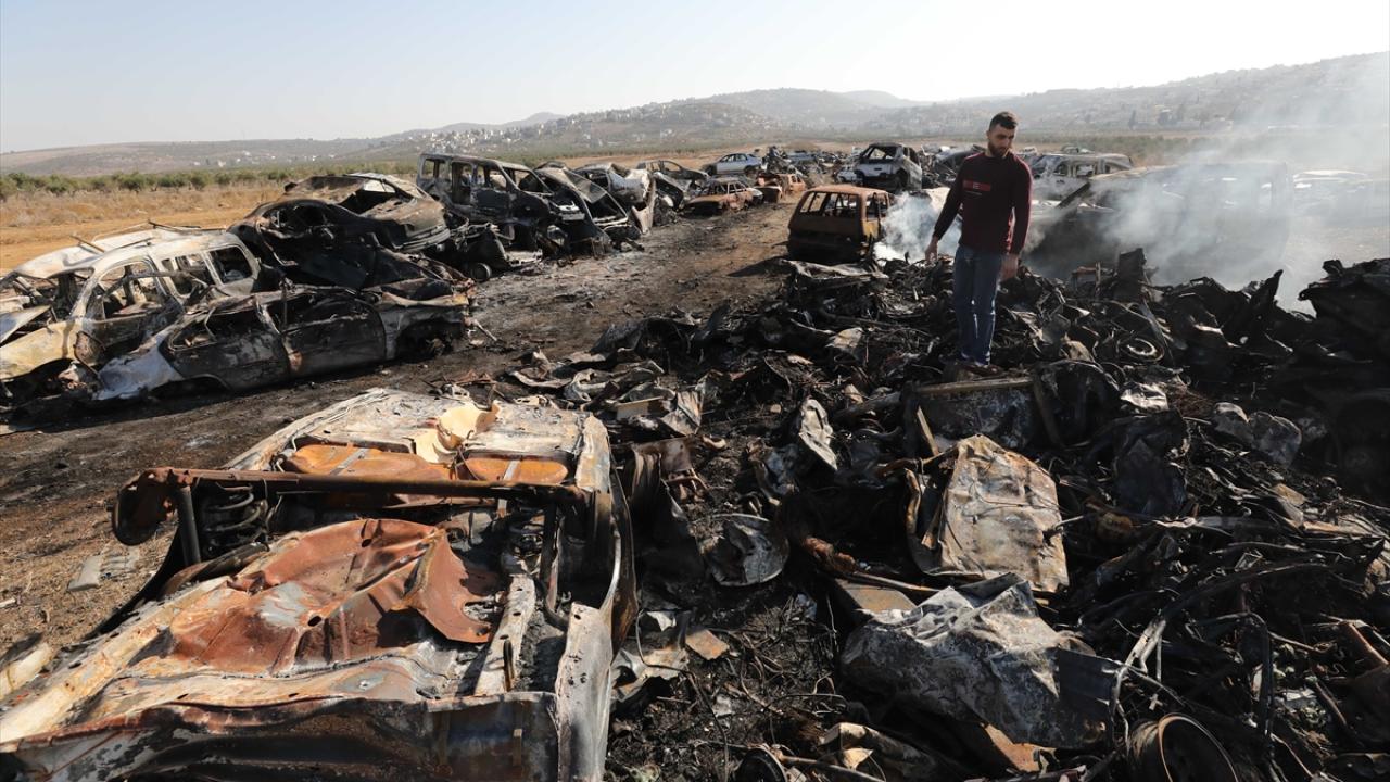 Saldırganların ateşe verdiği depodan dumanlar yükseldi ve patlama sesleri duyuldu.