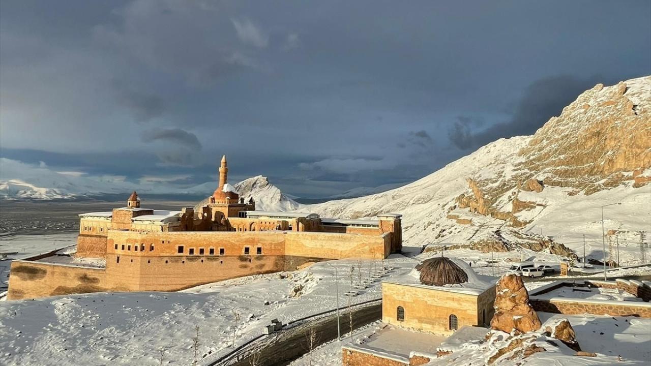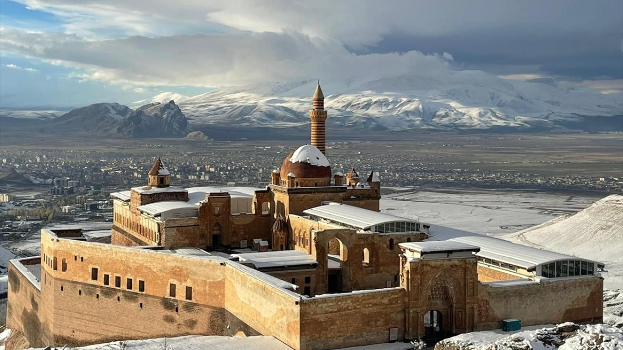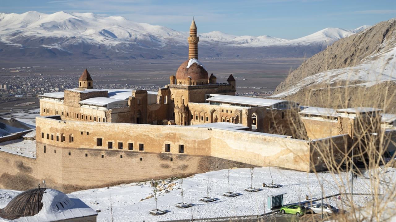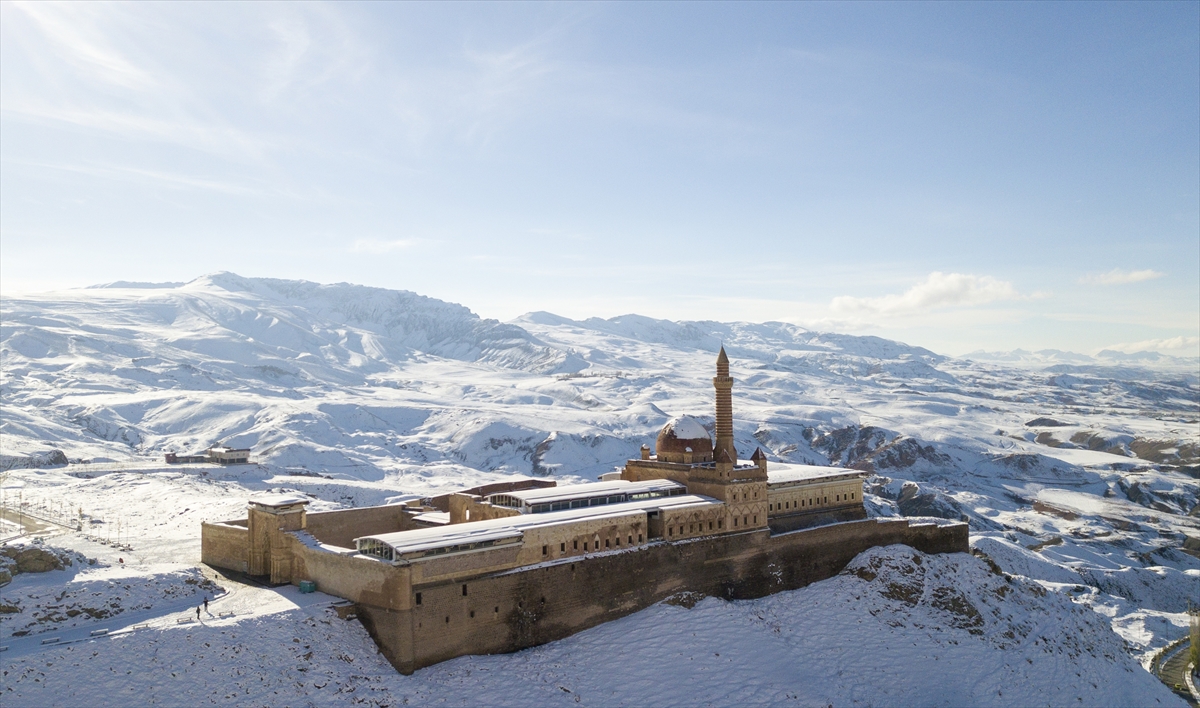 Osmanlı İmparatorluğu`nun Anadolu`daki en önemli eserlerinden, UNESCO Dünya Miras Geçici Listesi`nde de yer alan İshak Paşa Sarayı, her mevsim ayrı bir güzelliğe bürünüyor.