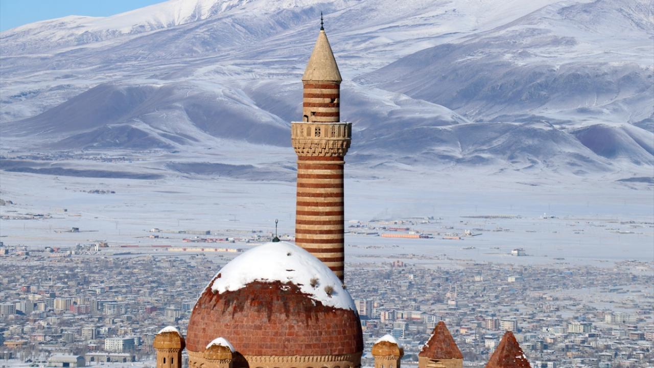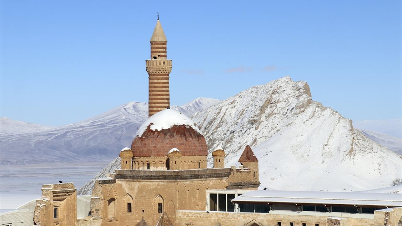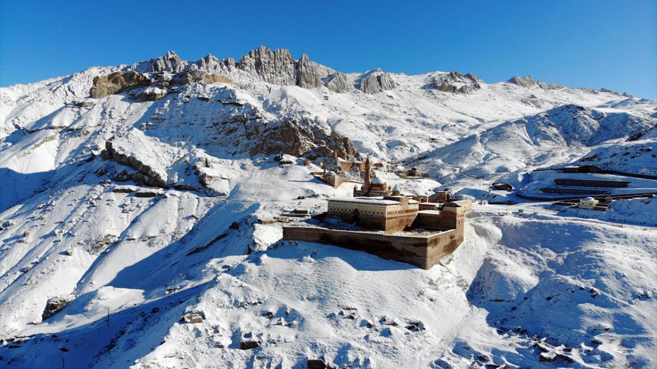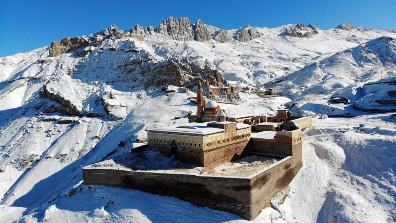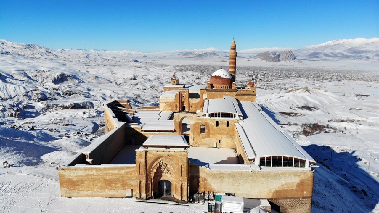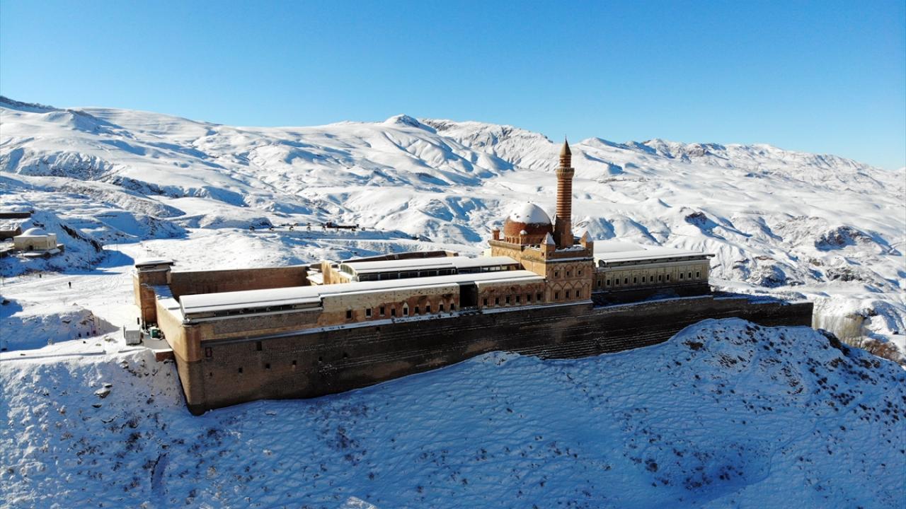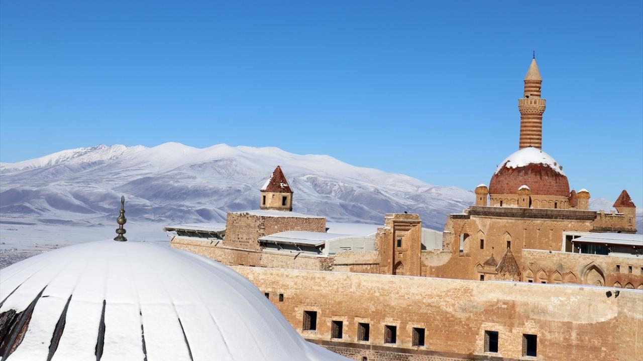 Bölgeye gelen misafirler, karla kaplı halini görme fırsatı buldukları tarihi saray çevresini gezdi ve fotoğraf çekti.