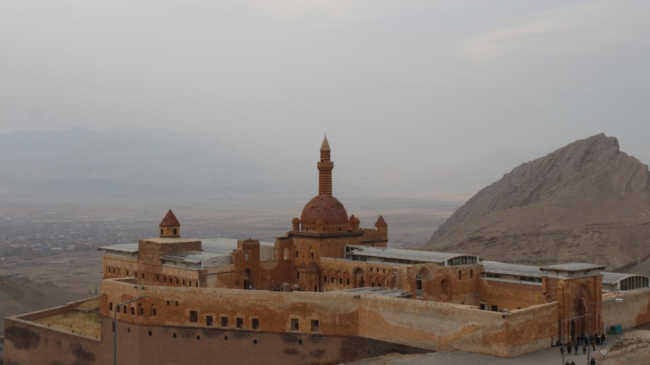 Ağrı'nın Doğubayazıt ilçesinde bulunan UNESCO'nun Dünya Miras Geçici Listesi'nde yer alan İshak Paşa Sarayı'nda ara tatil dolayısıyla ziyaretçi yoğunluğu yaşanıyor.
