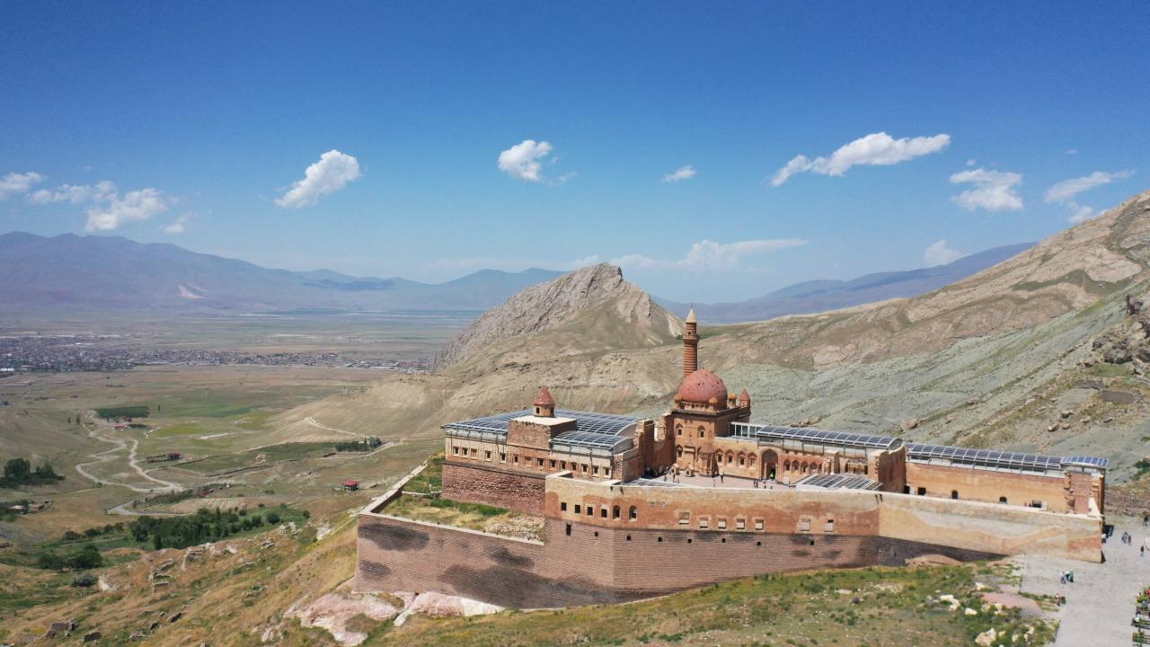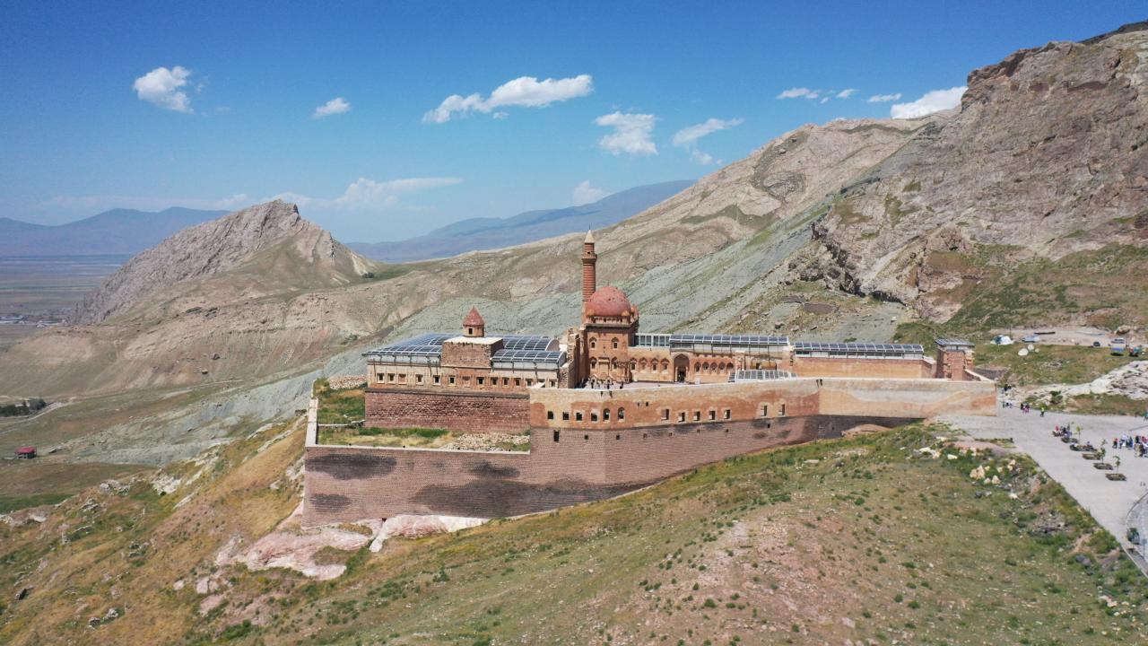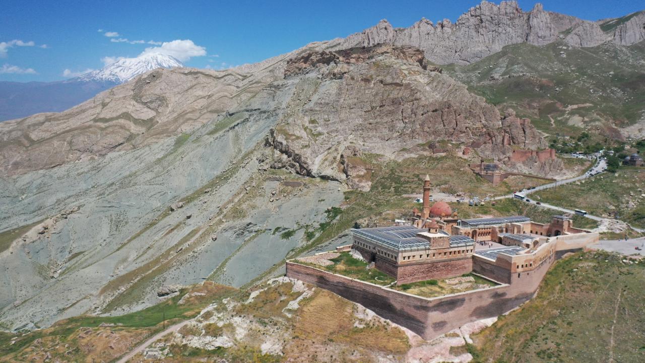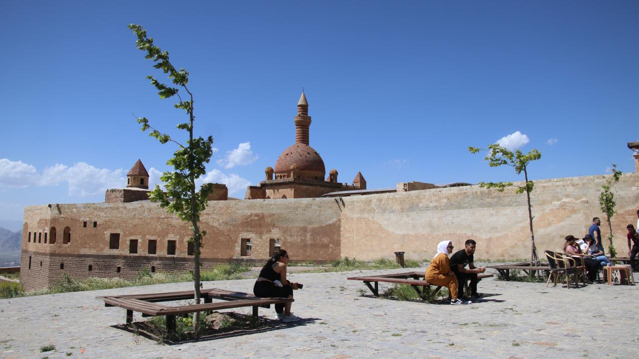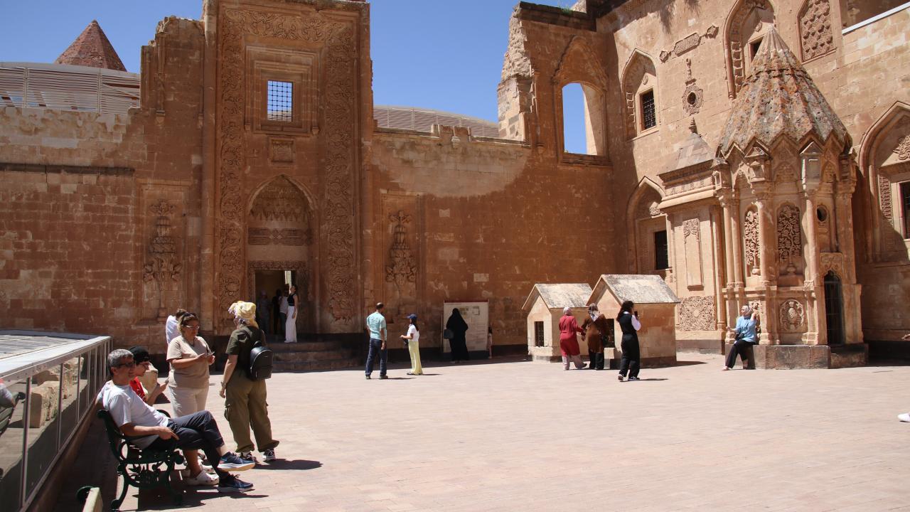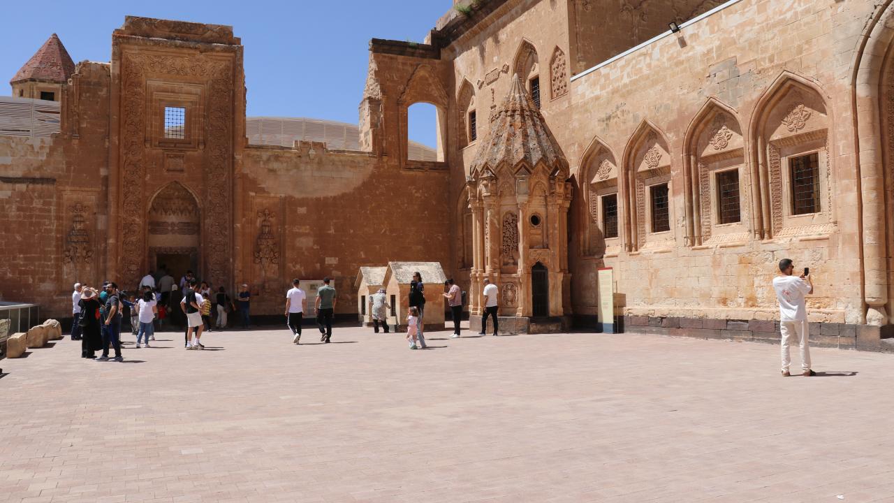 Ağrı'nın Doğubayazıt ilçesinde Lale Devri'nde inşa edilen en önemli eserler arasında yer alan tarihi İshak Paşa Sarayı, 9 günlük Kurban Bayramı tatilinde yurdun farklı bölgelerinden gelen ziyaretçileri ağırlıyor.