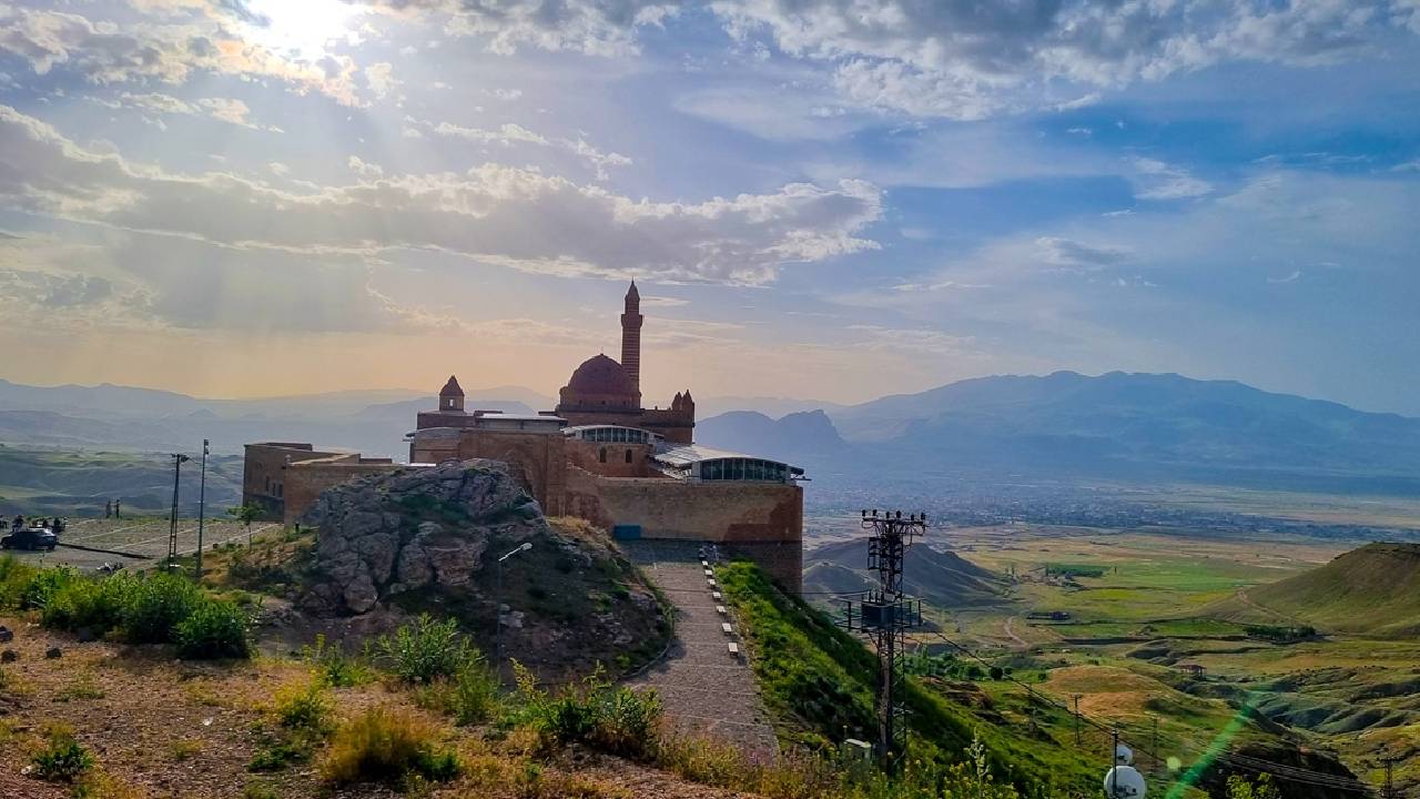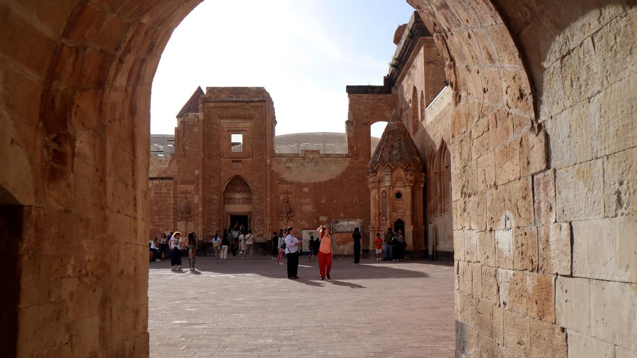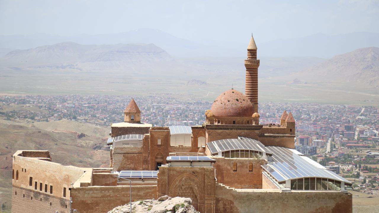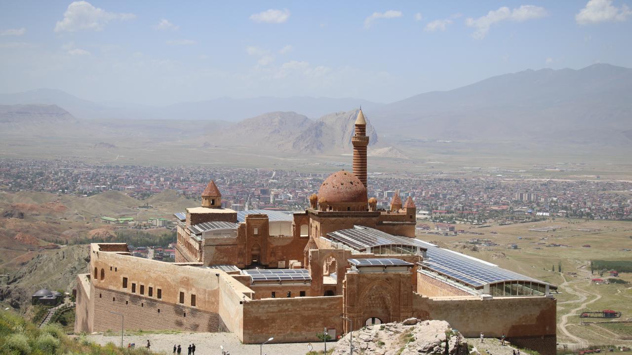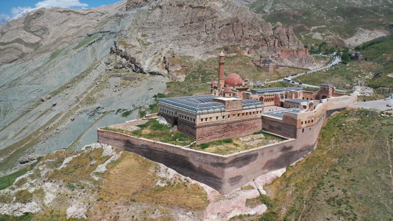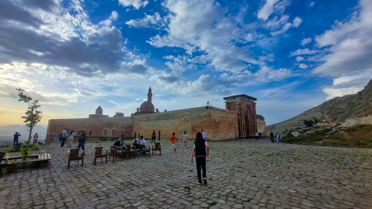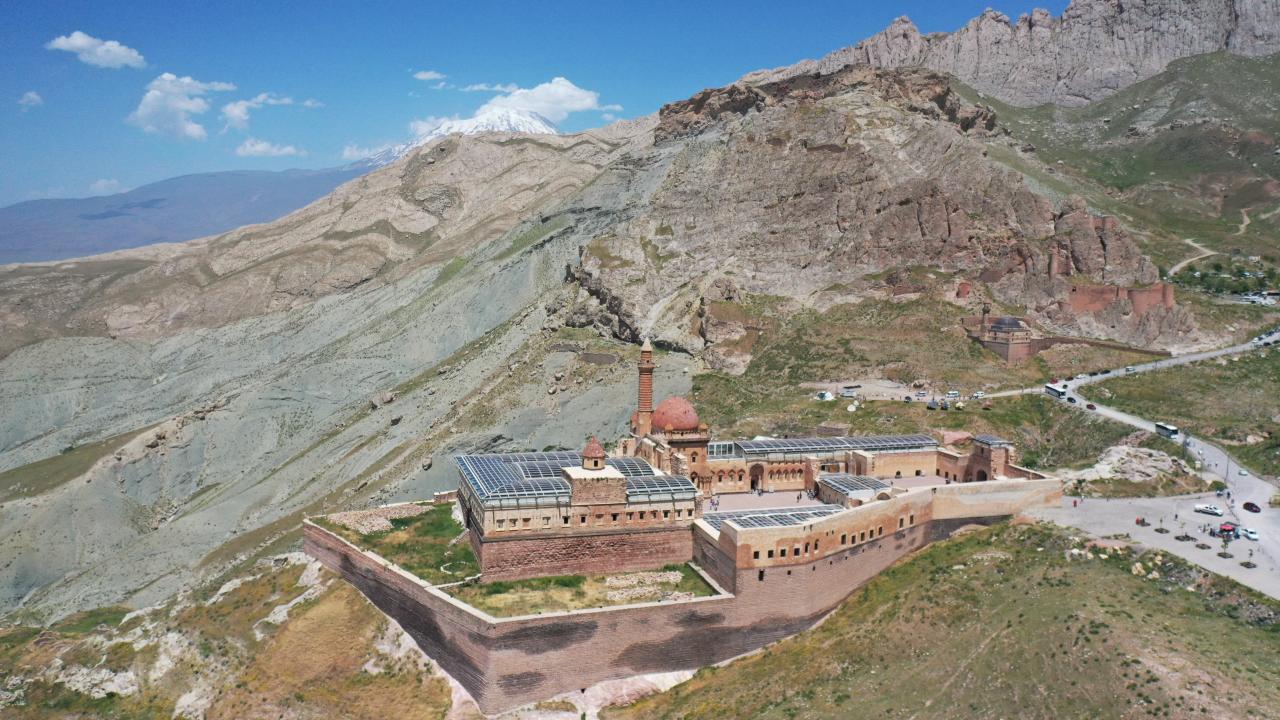Ağrı'nın Doğubayazıt ilçesinde Lale Devri'nde inşa edilen en önemli eserler arasında yer alan tarihi İshak Paşa Sarayı, 9 günlük Kurban Bayramı tatilinde yurdun farklı bölgelerinden gelen ziyaretçileri ağırlıyor.