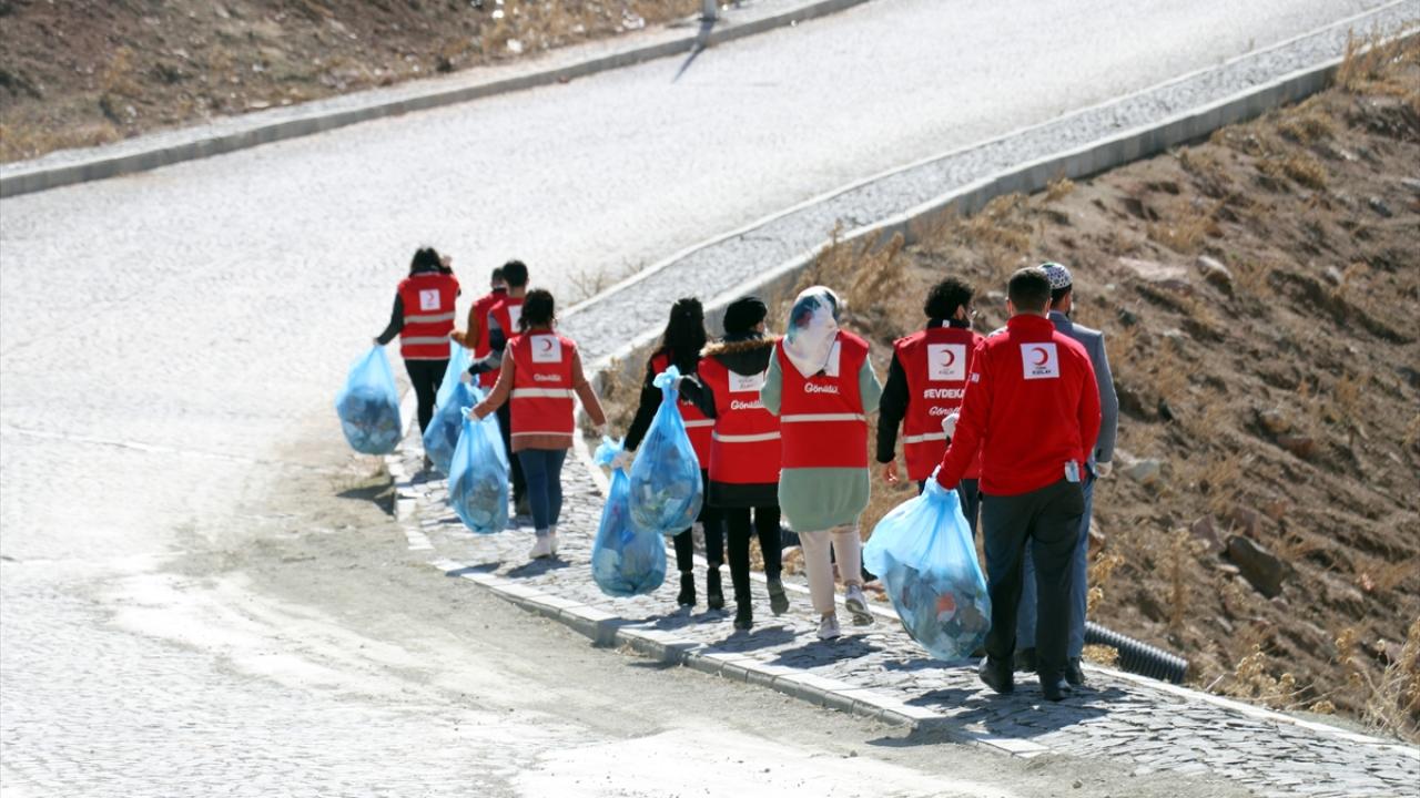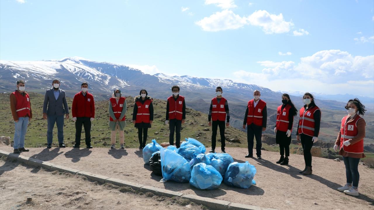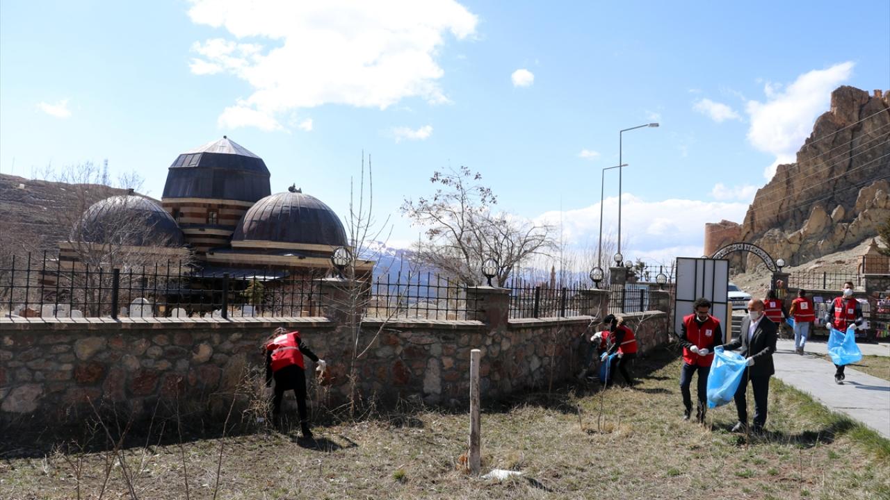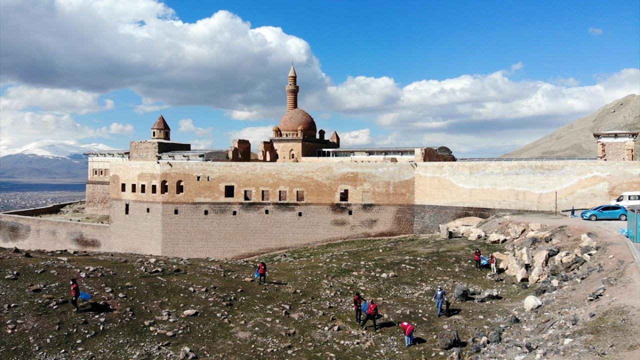 Ağrı'da Türk Kızılay gönüllüleri, tarihi İshak Paşa Sarayı, Ahmed-i Hani Türbesi ve Bayezid Camii etrafında çevre temizliği yaptı.