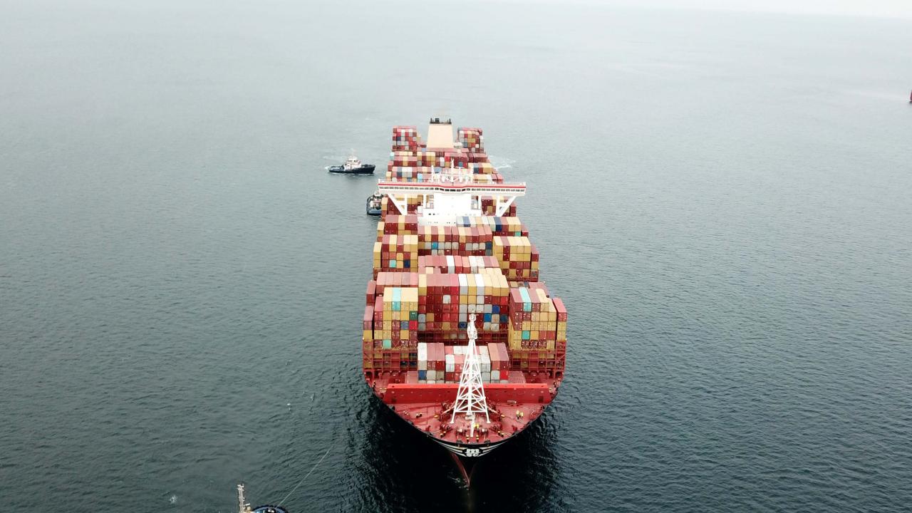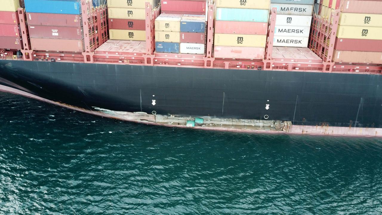 İskeleye çarpan dev konteyner gemisi görüntülendi