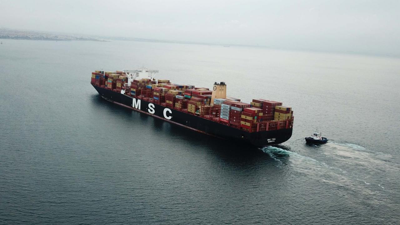 Liberya Bayraklı MSC TINA isimli 398,5 metre boyundaki konteyner gemisi, yanaşma manevrası sırasında Marport`a ait iskeleye çarptı.