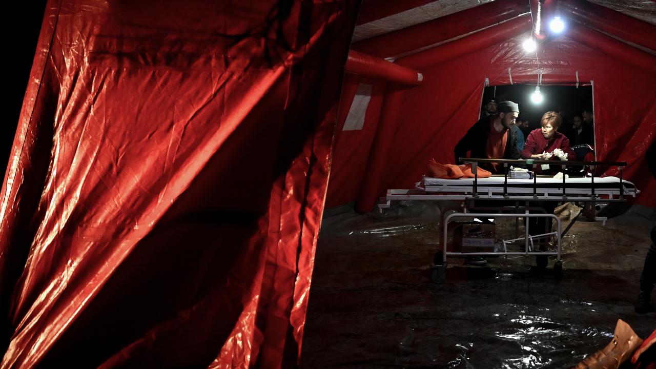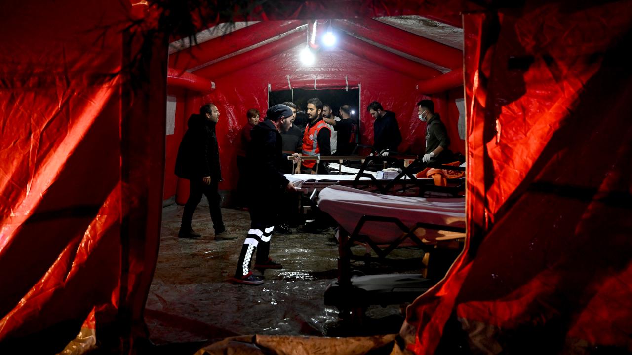 Hastanenin yanındaki boş alana acil vakalar için sahra çadırı kuruldu.