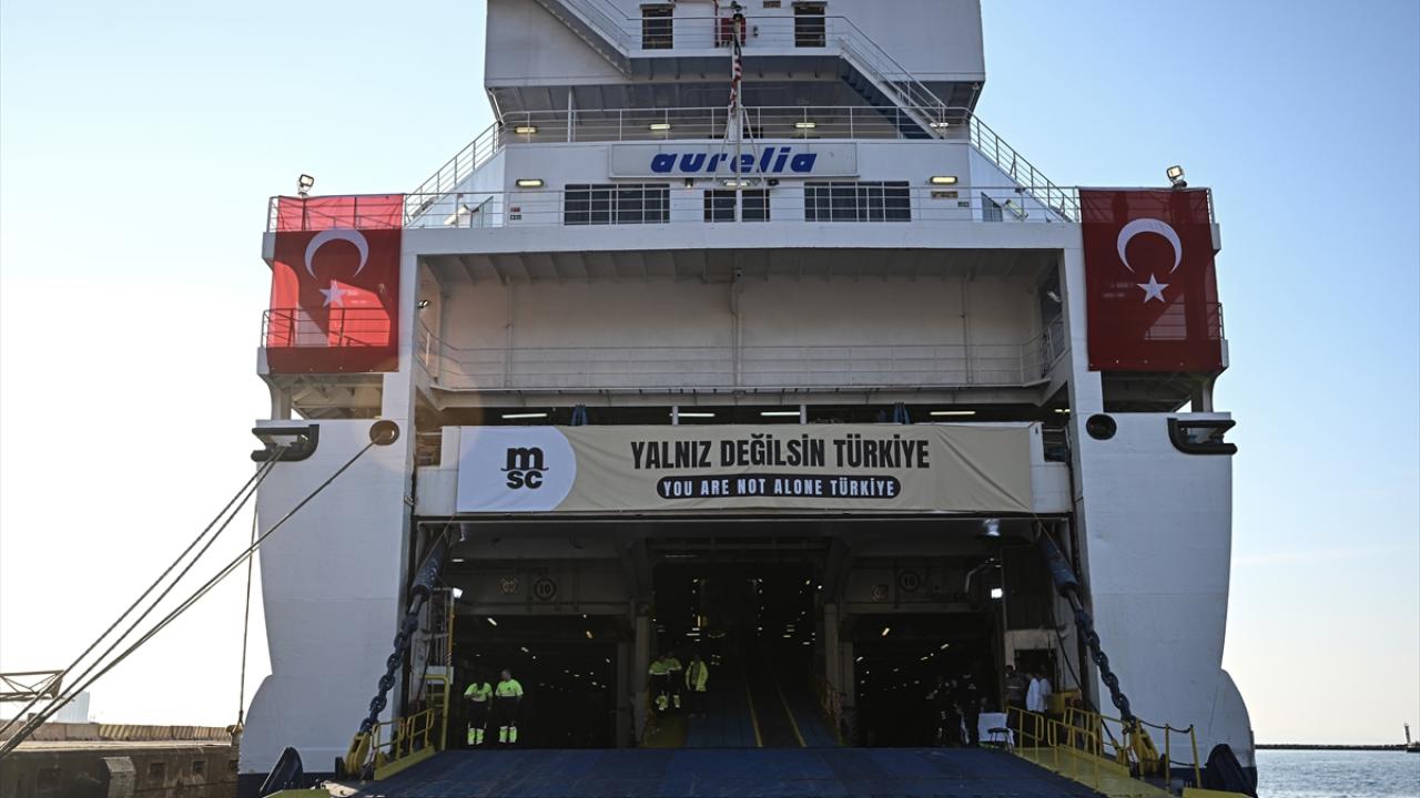 Ulaştırma ve Altyapı Bakanlığının koordinasyonunda, Napoli şehrinden hareket eden, yardım malzemeleri taşıyan MSC AURELIA gemisi, İskenderun Limanı`na demirledi.