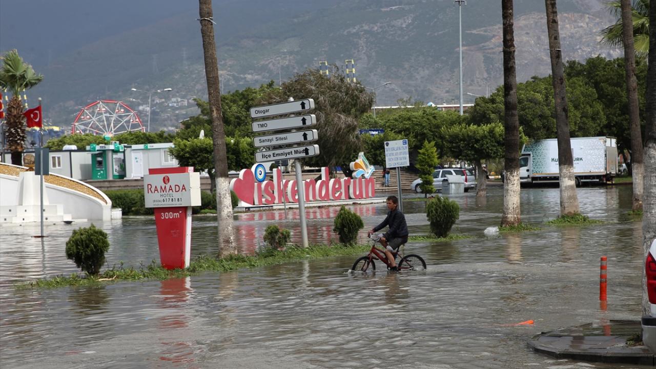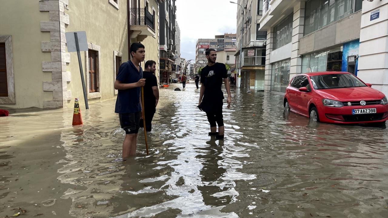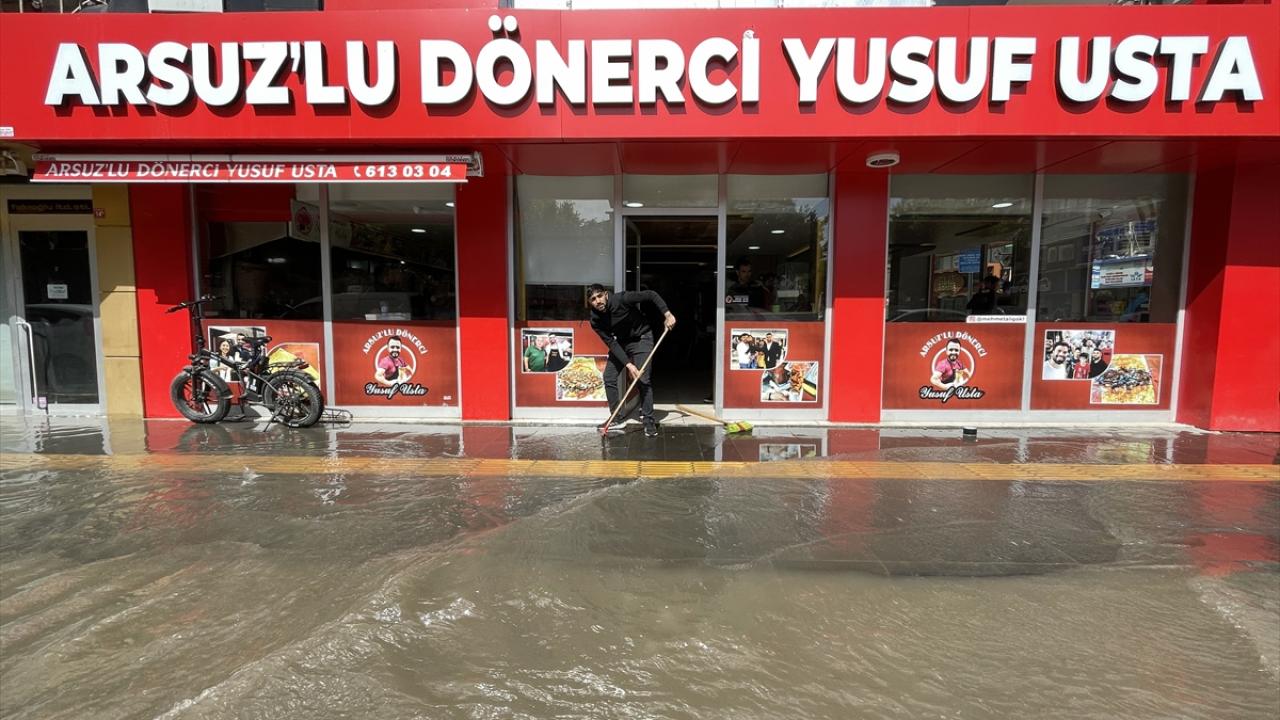 Sağanak nedeniyle bazı caddelerde su birikintileri oluştu, rögarlar taştı.