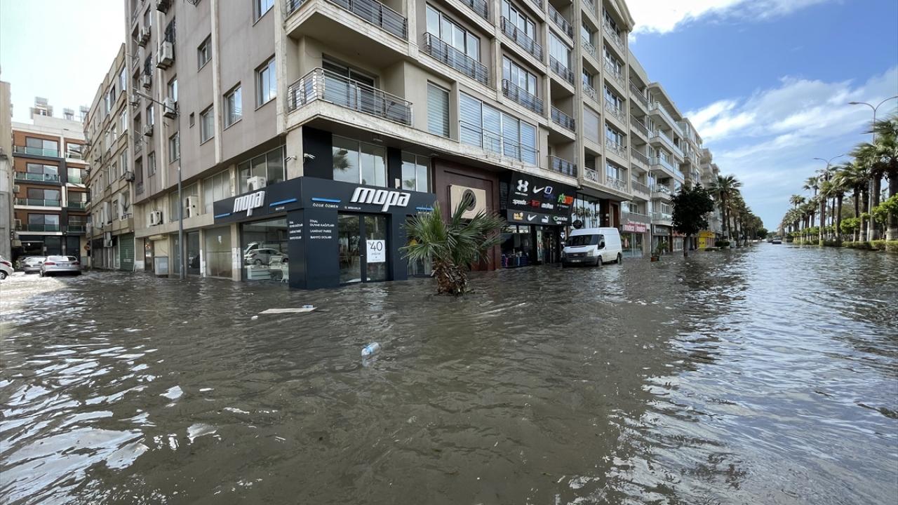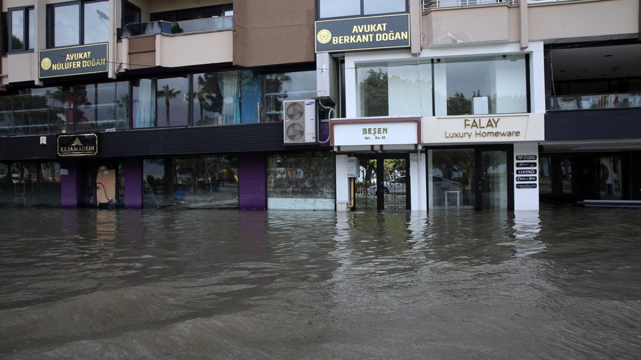 Yağış ve lodos nedeniyle deniz seviyesinin yükselmesi sonucu sahil kısmındaki Anıt Meydanı ile Atatürk Bulvarı`nda oluşan su birikintileri nedeniyle sürücüler trafikte ilerlemekte güçlük çekti.