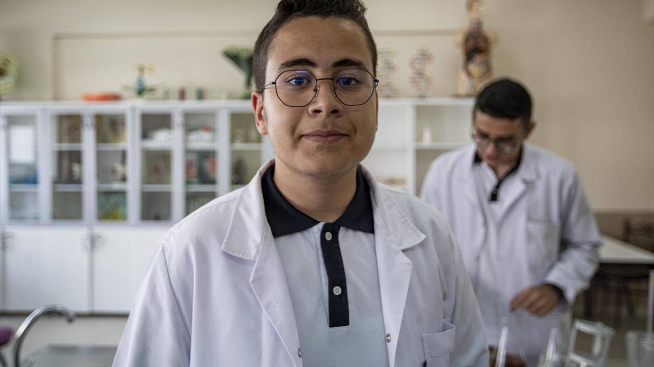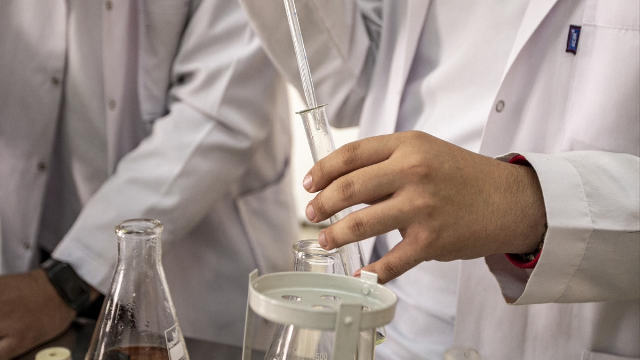 Biyoloji öğretmeni Özlem Türkez ile "İn Vitro Akciğer Hasarı Modelinde Çevresel Kirleticilerin Neden Olduğu Biyokimyasal ve Moleküler Toksitiye Karşı Yeni Bir Koruyucu: Rheum Ribes (Işkın)" projesini hazırlayan öğrenciler, laboratuvarda araştırma yaptı.