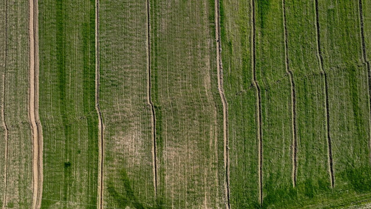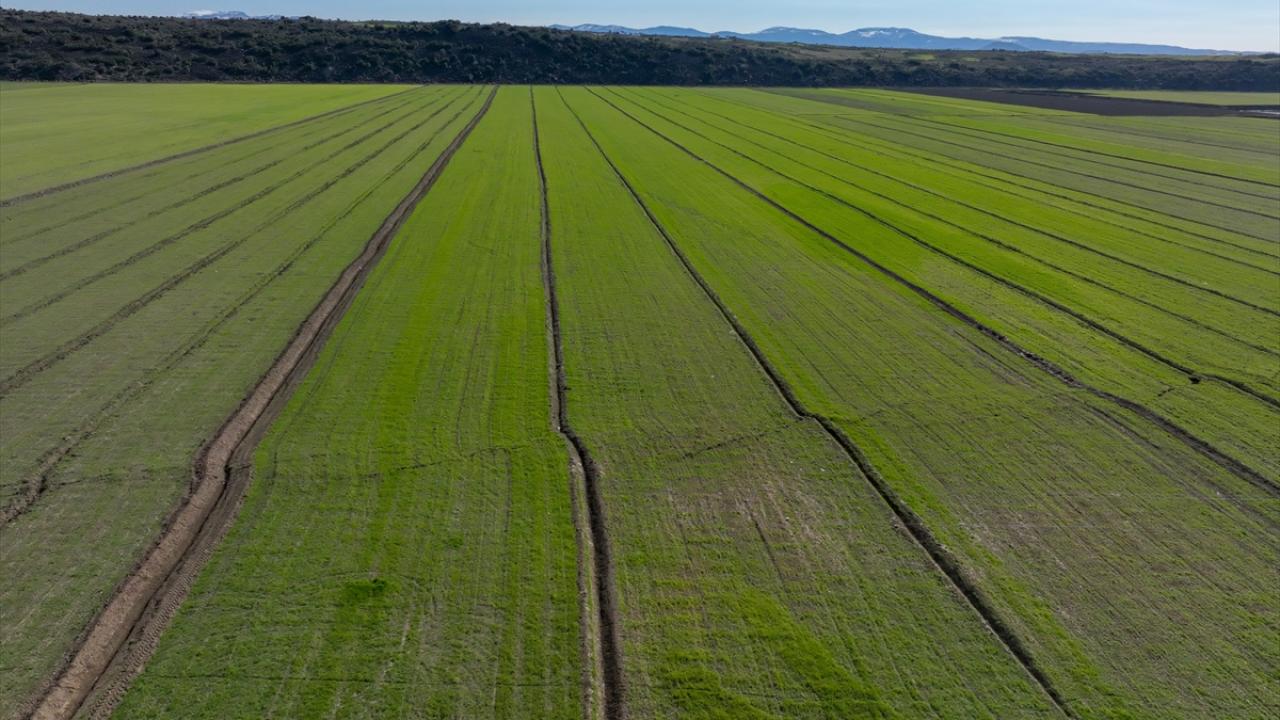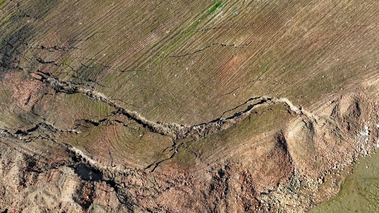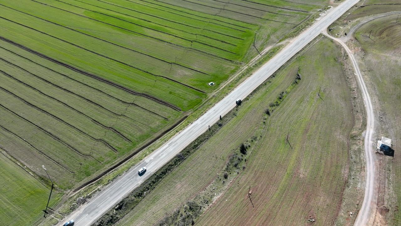 Arpa tarlasında sulama için açılan arkların kayması ve oluşan yarıklar dron ile görüntülendi.