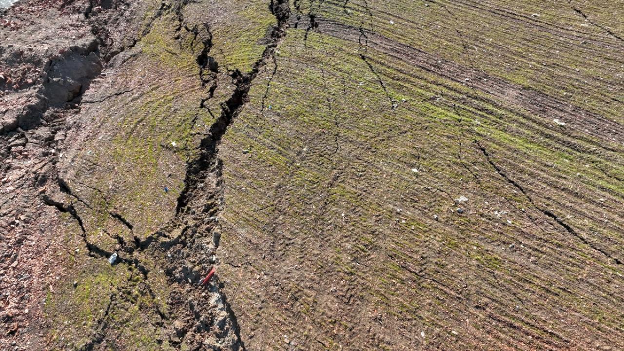 Fevzi Paşa Mahallesi`ndeki arazilerde oluşan kayma ile uzun ve derin yarıklar, depremin şiddetini gözler önüne serdi.