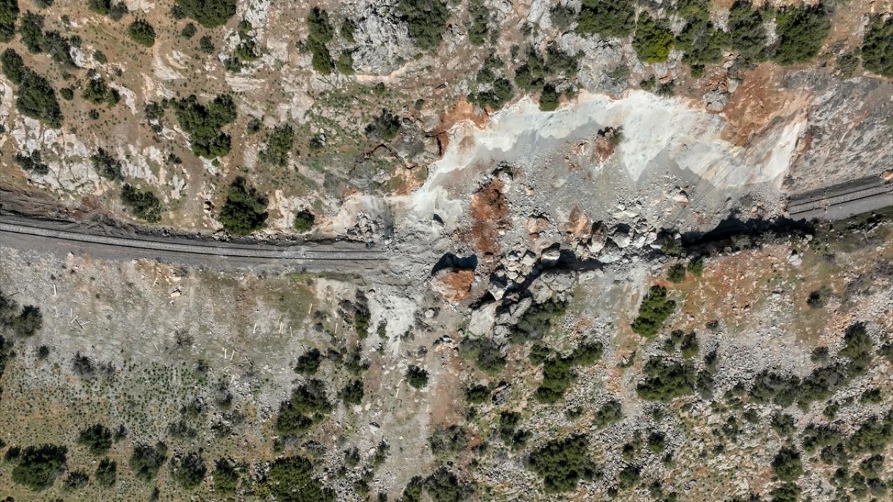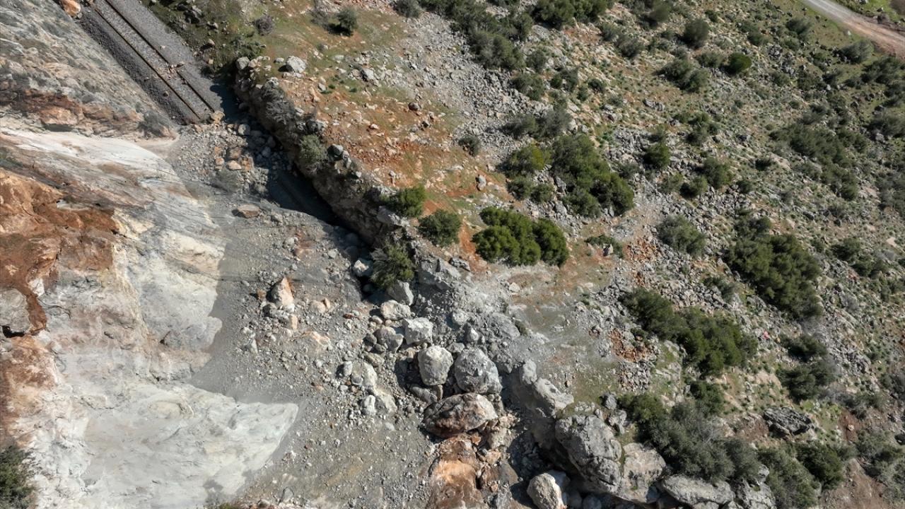 Öte yandan, depremlerin ardından kaya parçalarının demir yoluna yuvarlandığı görüldü.