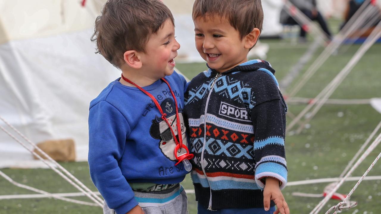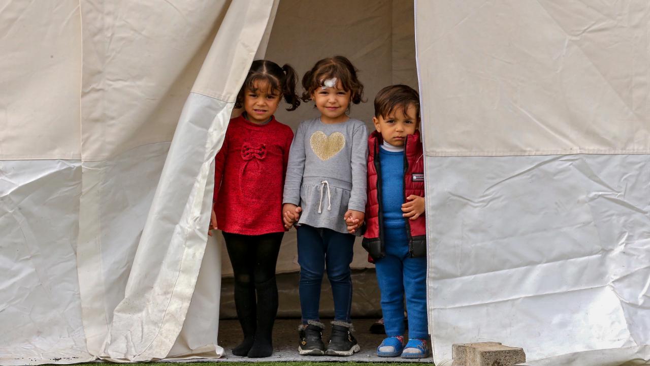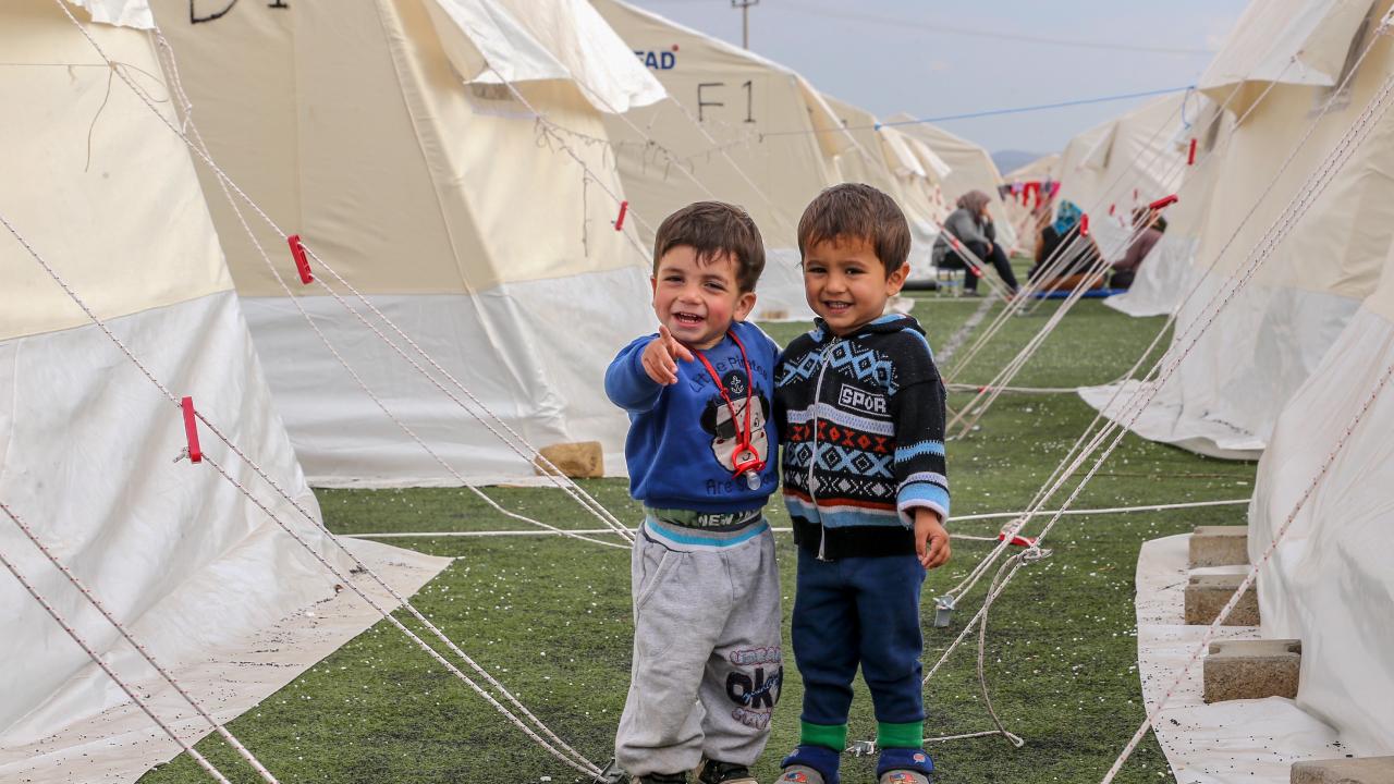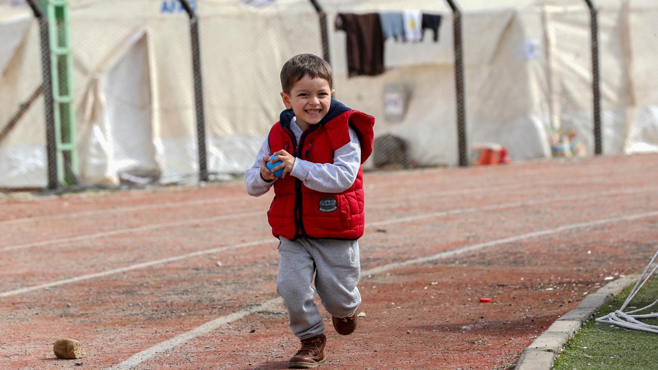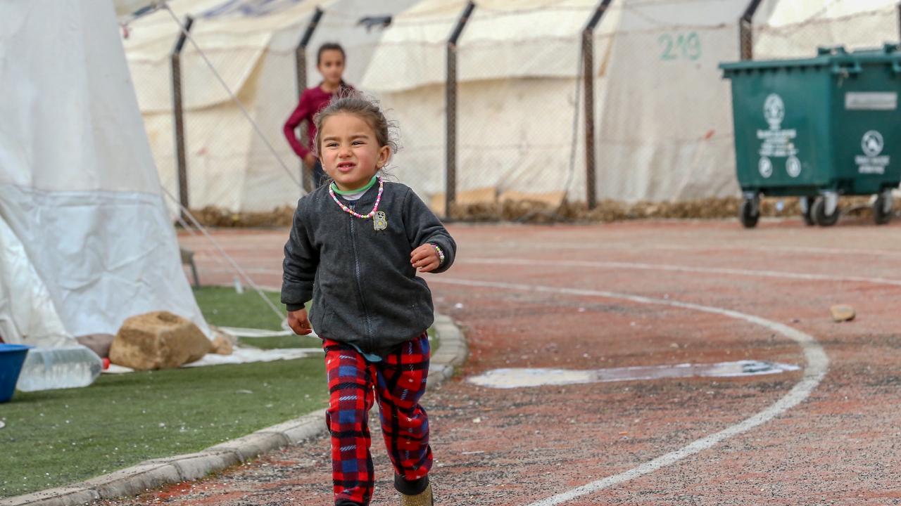İslahiye'deki çadır kentte çocuklar oyun oynayarak vakit geçiriyor