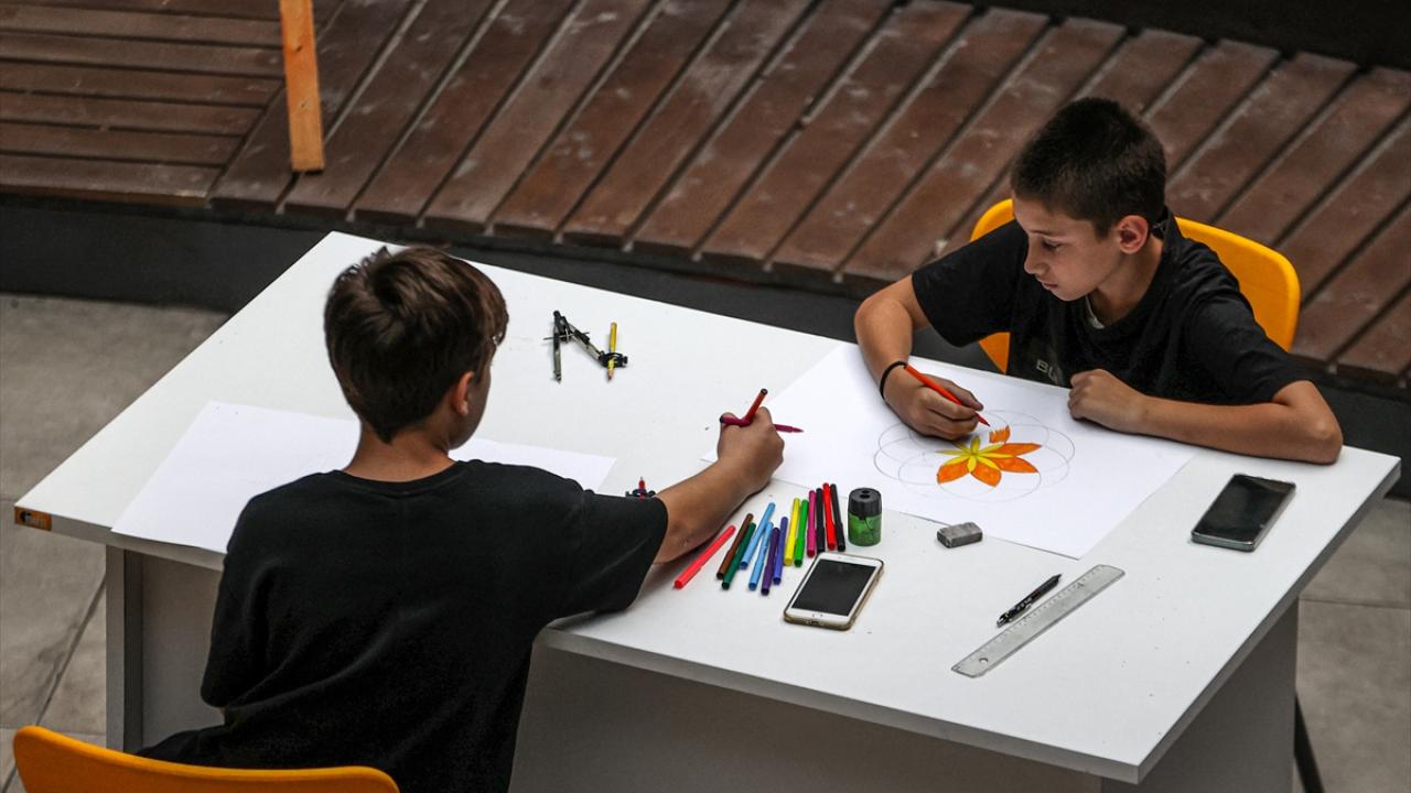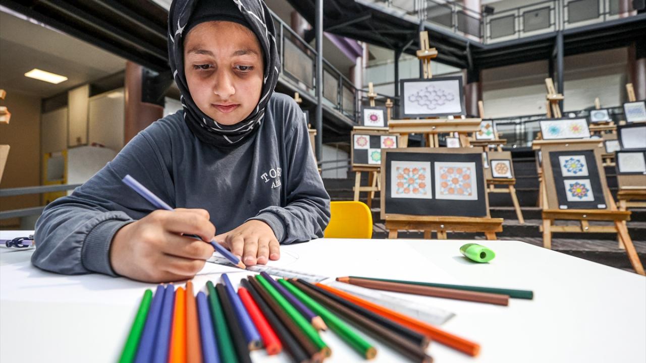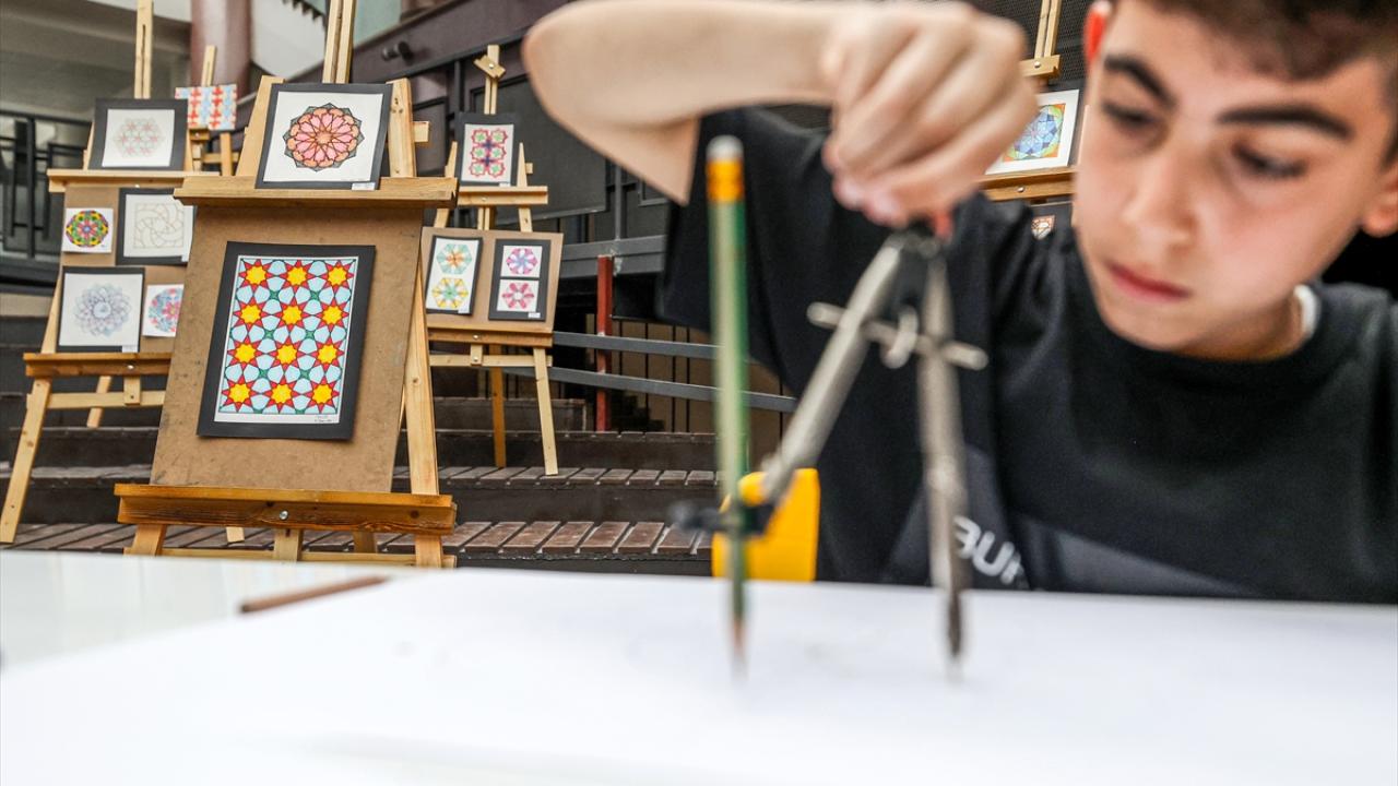 Bursa'da öğretmenlerinin açtığı "İslam Sanatında Geometrik Desenler Kursu"na katılan ortaokul öğrencileri, İslam sanatında kullanılan geometrik desenleri çizerek hem dikkatlerini hem yeteneklerini geliştirdi.