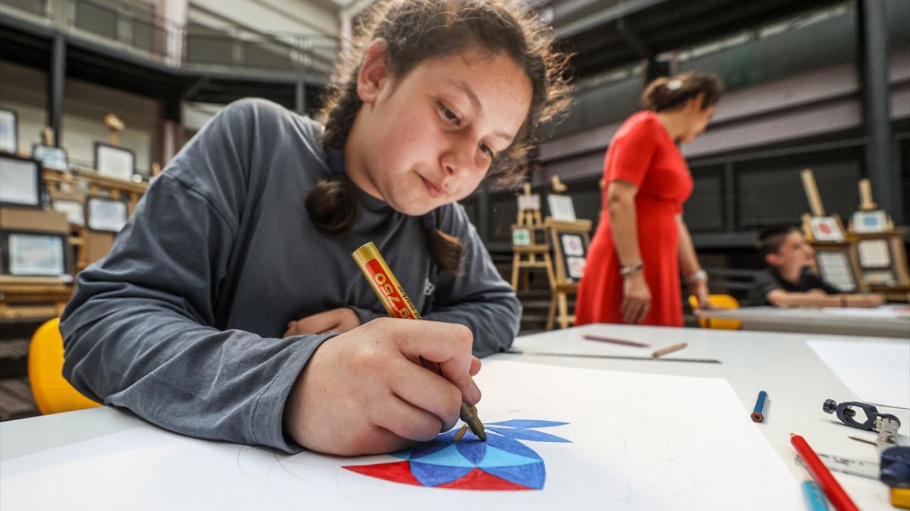 Öğrencilerden Berra Sevim de en sevdiği çizimlerin pergel yardımıyla yaptığı desenler olduğunu aktardı.
