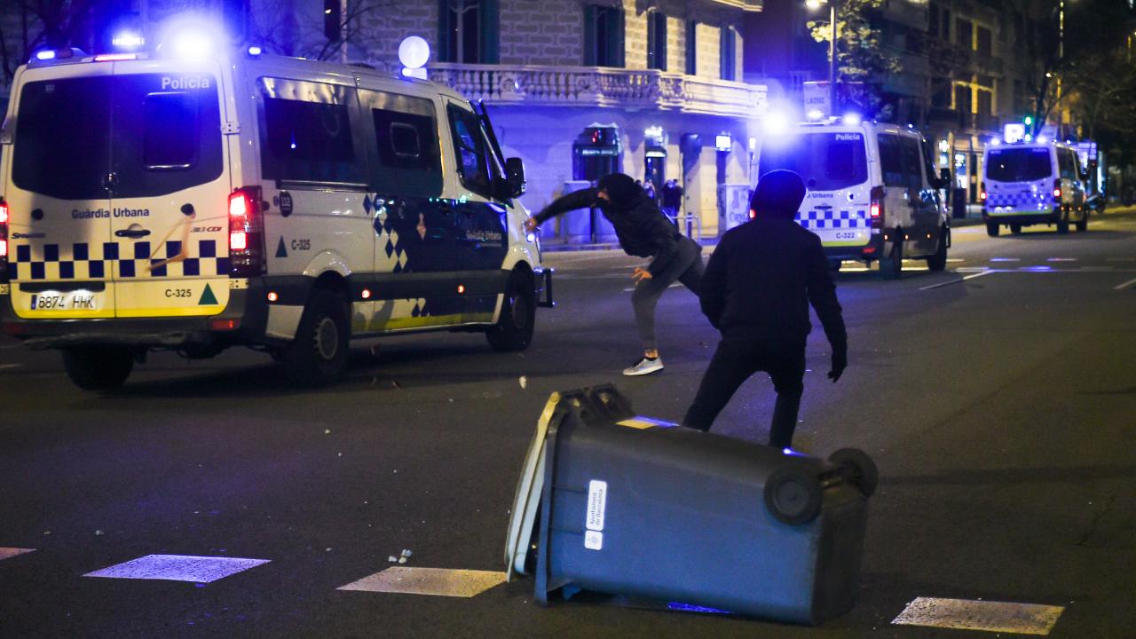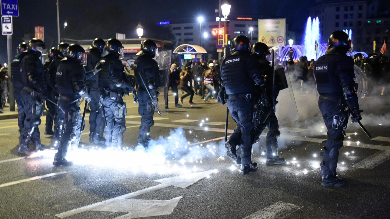 Barselona`da ise küçük gruplar, çöp bidonlarını ateşe verip, yollara barikat kurarak ve polise taş atarak saldırdı.