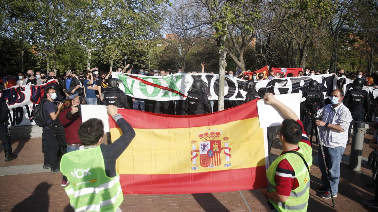 İslam ve göçmen karşıtı politika izleyen Vox partisi, miting için 4 Mayıs`ta yapılacak erken yerel parlamento seçimlerinde aday listesini açıklamak için aşırı sol grupların çoğunlukta yaşadığı Vallecas Mahallesi`ni seçti.
