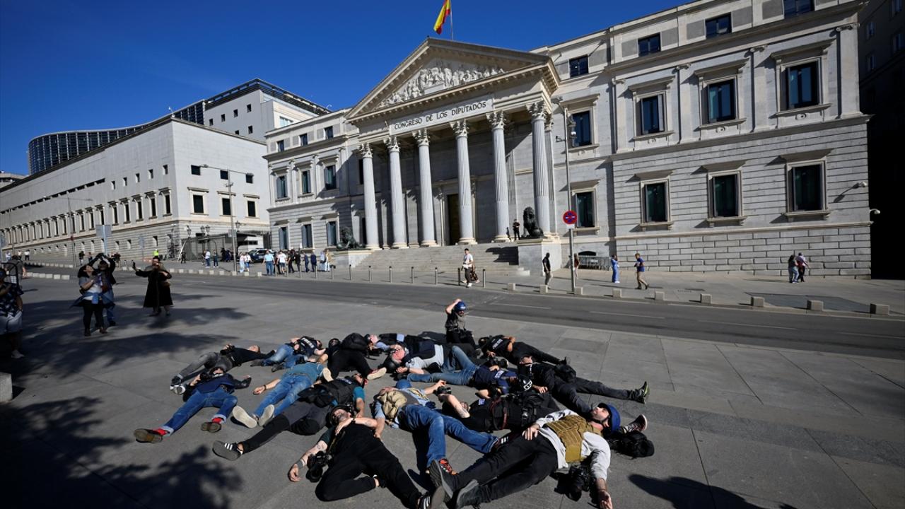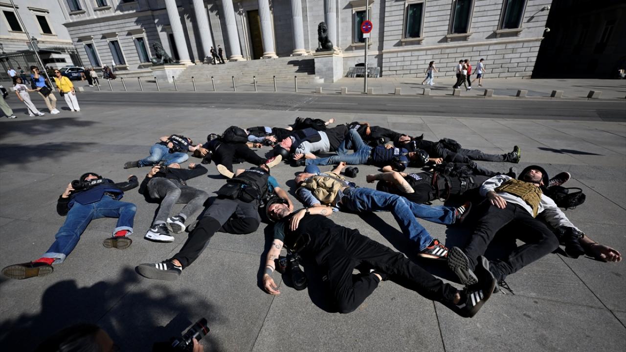 İspanya’da foto muhabirleri, Gazze’deki soykırım nedeniyle İsrail’i protesto etti.