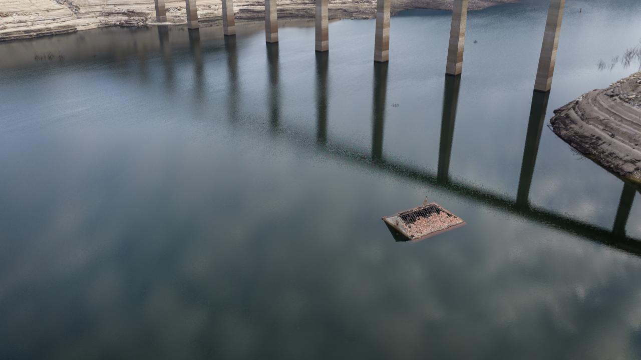 Ancak iki aydır neredeyse hiç yağmur yağmayan ve yakın zamanda yağış beklenmeyen bölgede Aceredo Harabeleri`nin neredeyse tüm iskeleti su yüzüne çıktı.