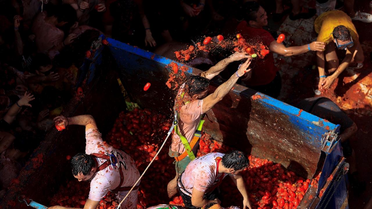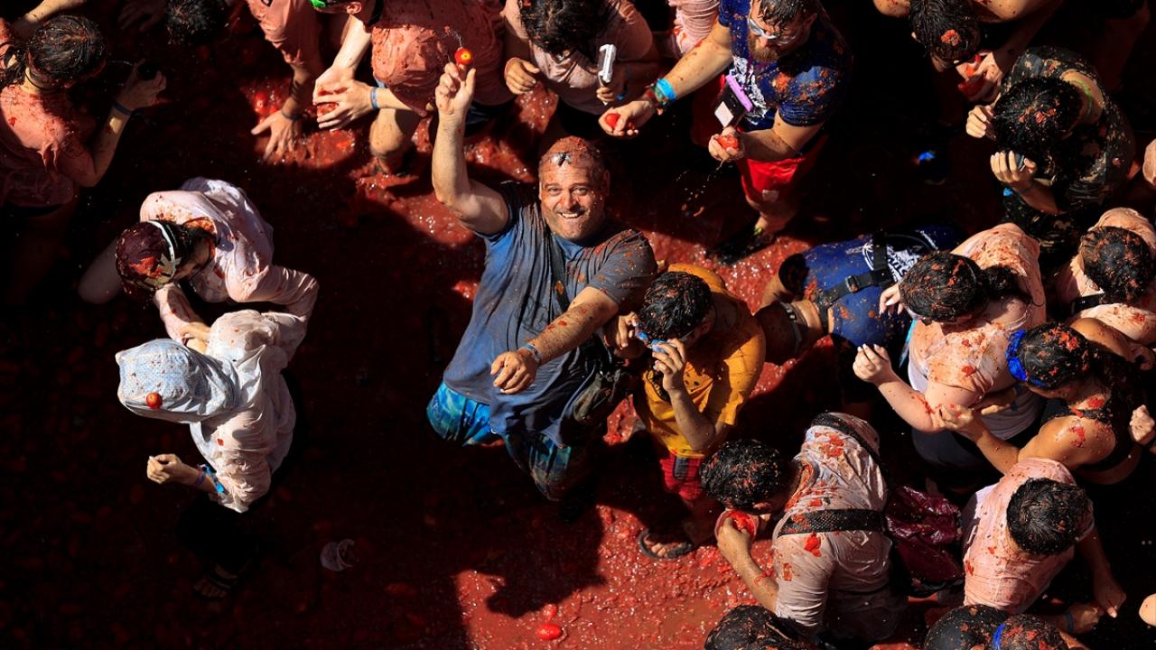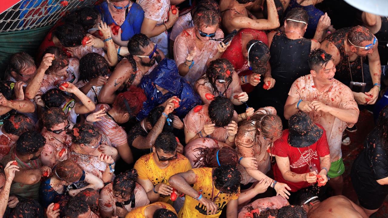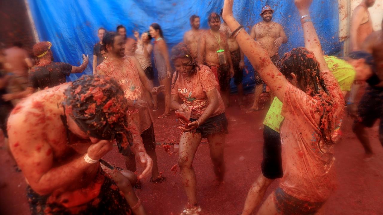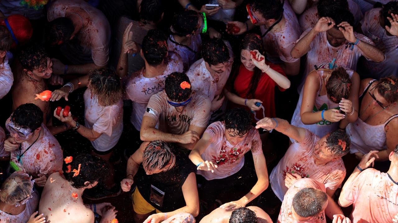 İspanya'nın doğusundaki Valencia kentinin Bunol ilçesinde ülkenin dünyaca tanınmış festivallerinden biri olan ve bu yıl 75'incisi düzenlenen “La Tomatina”ya katılan 20 bin kişi, dağıtılan 130 ton domatesi birbirine attı.