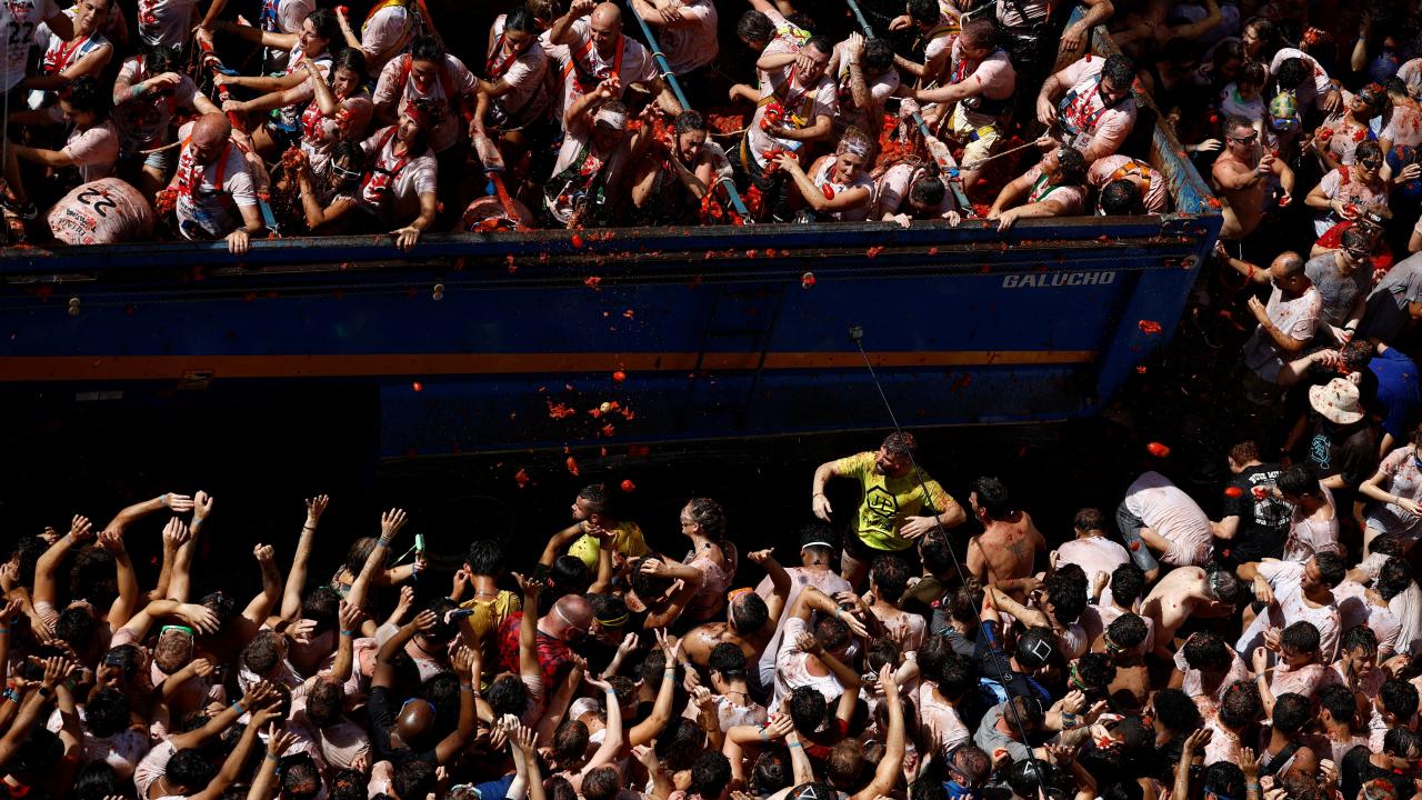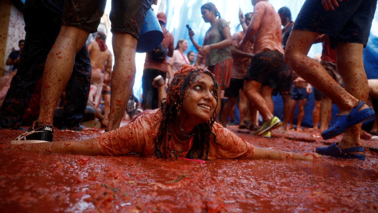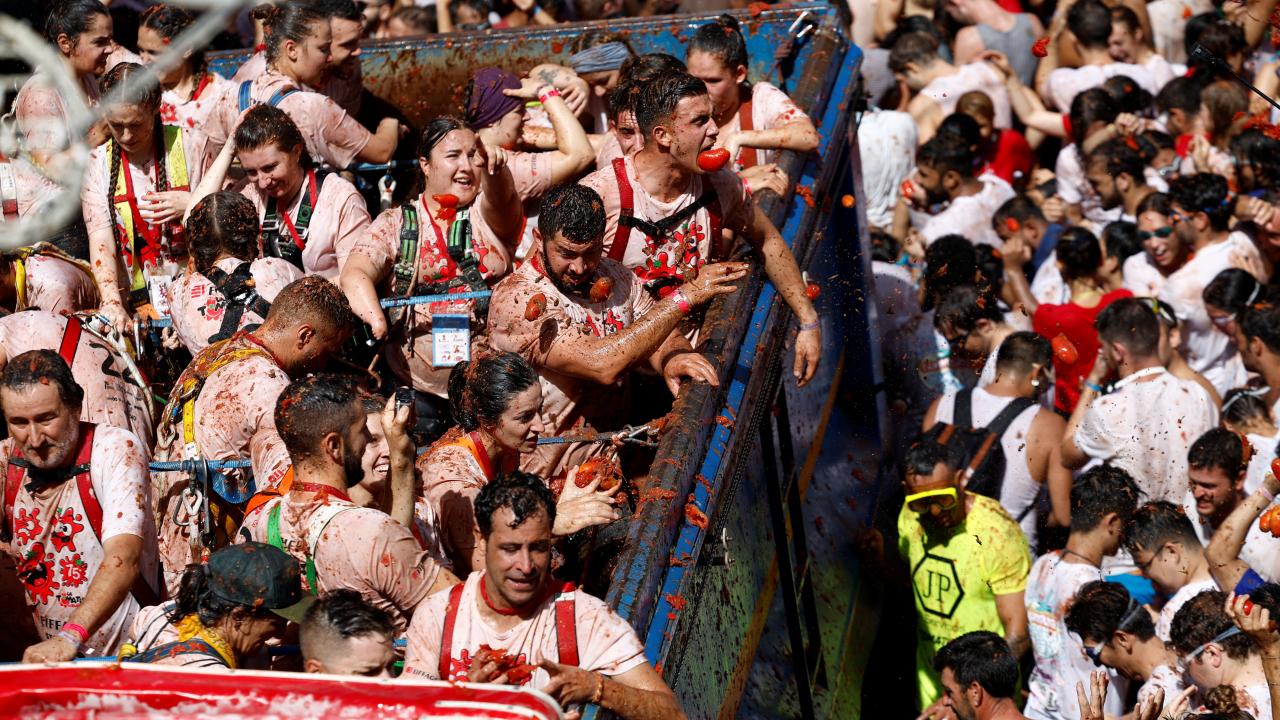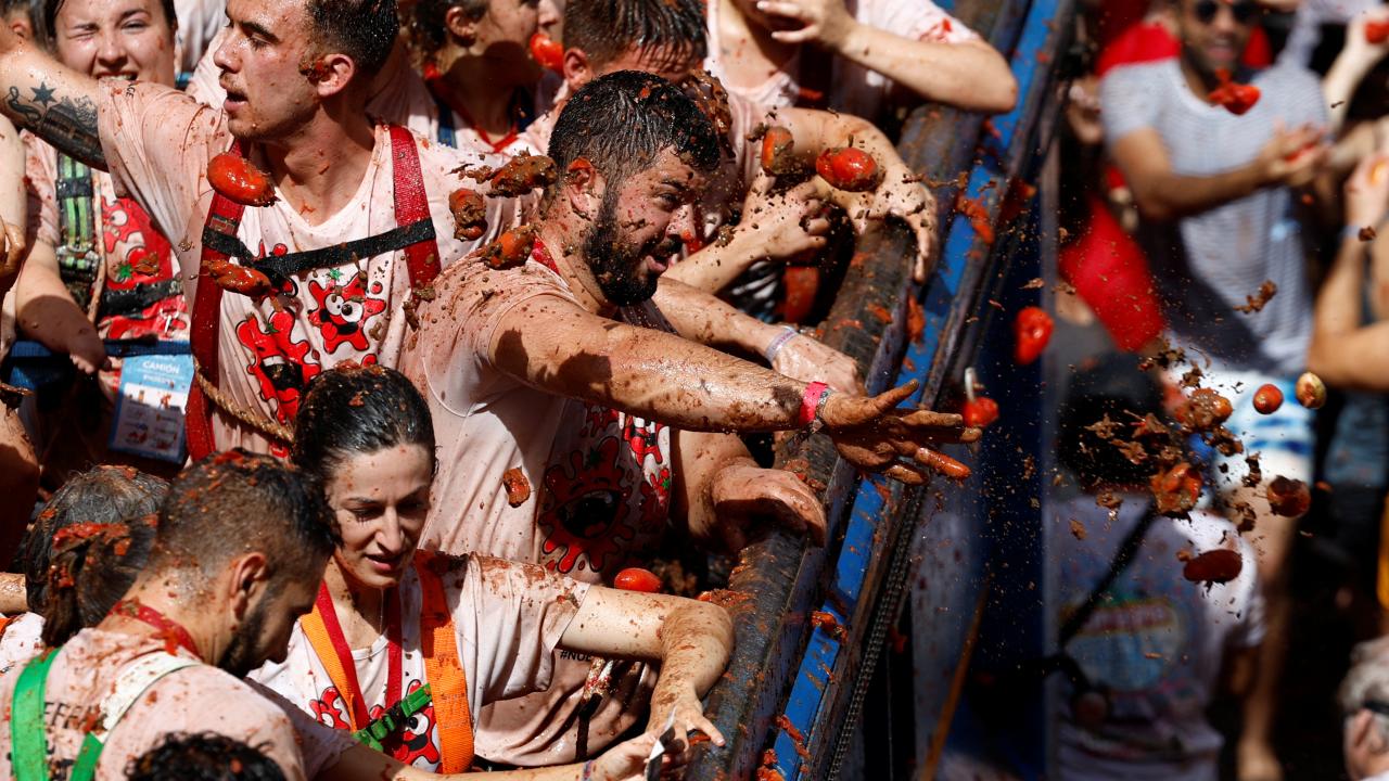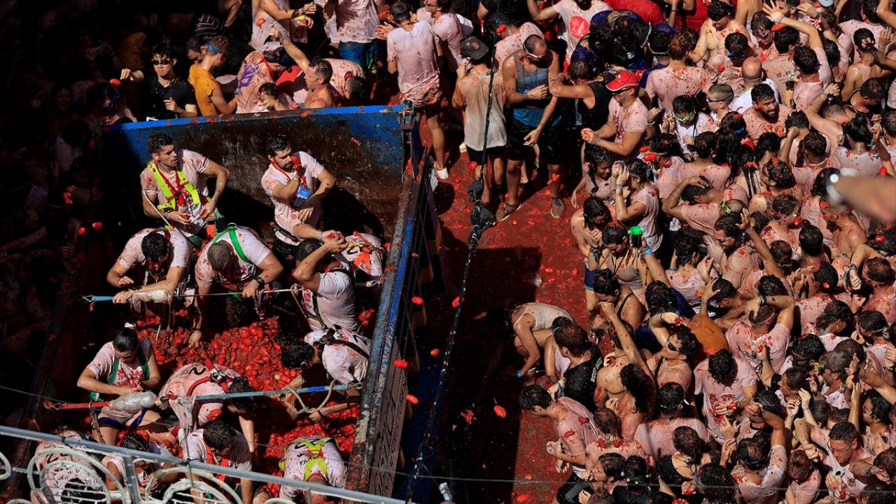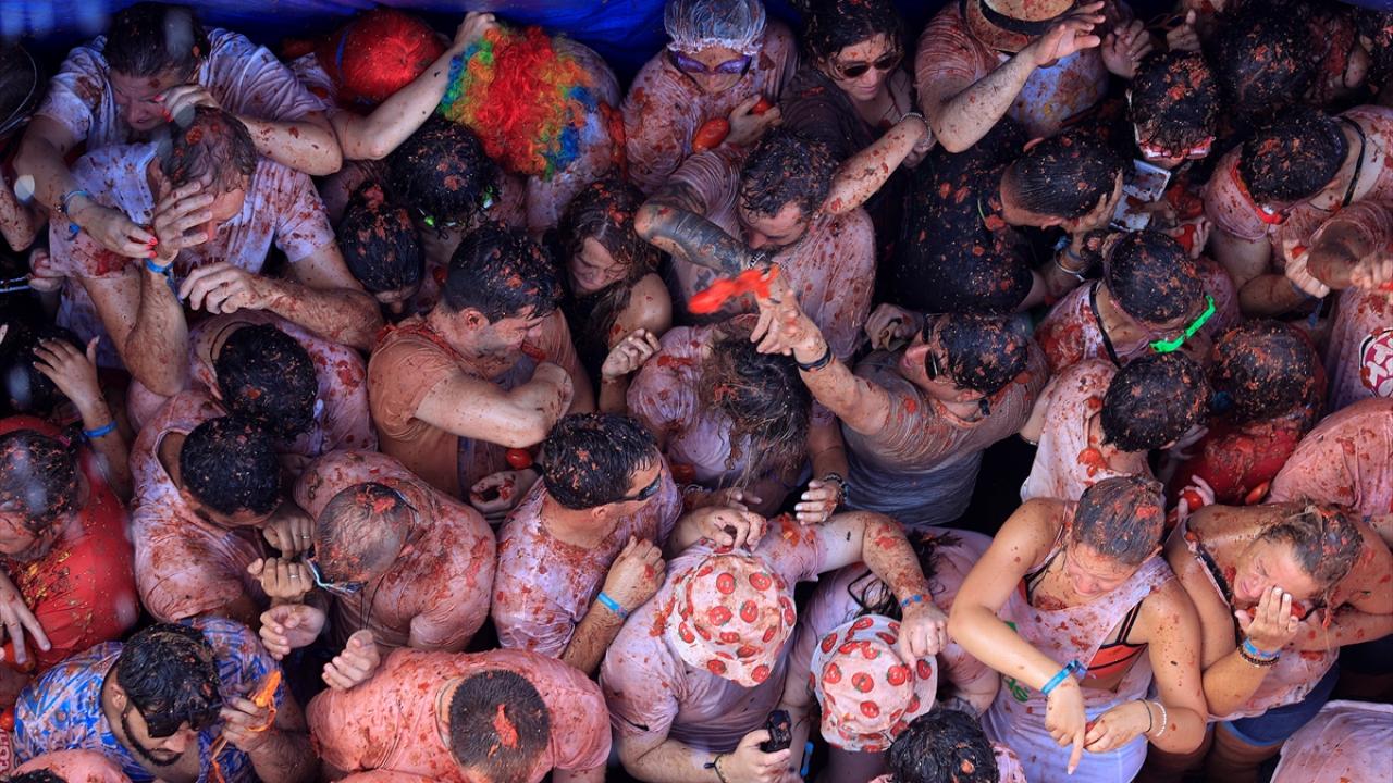 İspanya'nın doğusundaki Valencia kentinin Bunol ilçesinde ülkenin dünyaca tanınmış festivallerinden biri olan ve bu yıl 75'incisi düzenlenen “La Tomatina”ya katılan 20 bin kişi, dağıtılan 130 ton domatesi birbirine attı.
