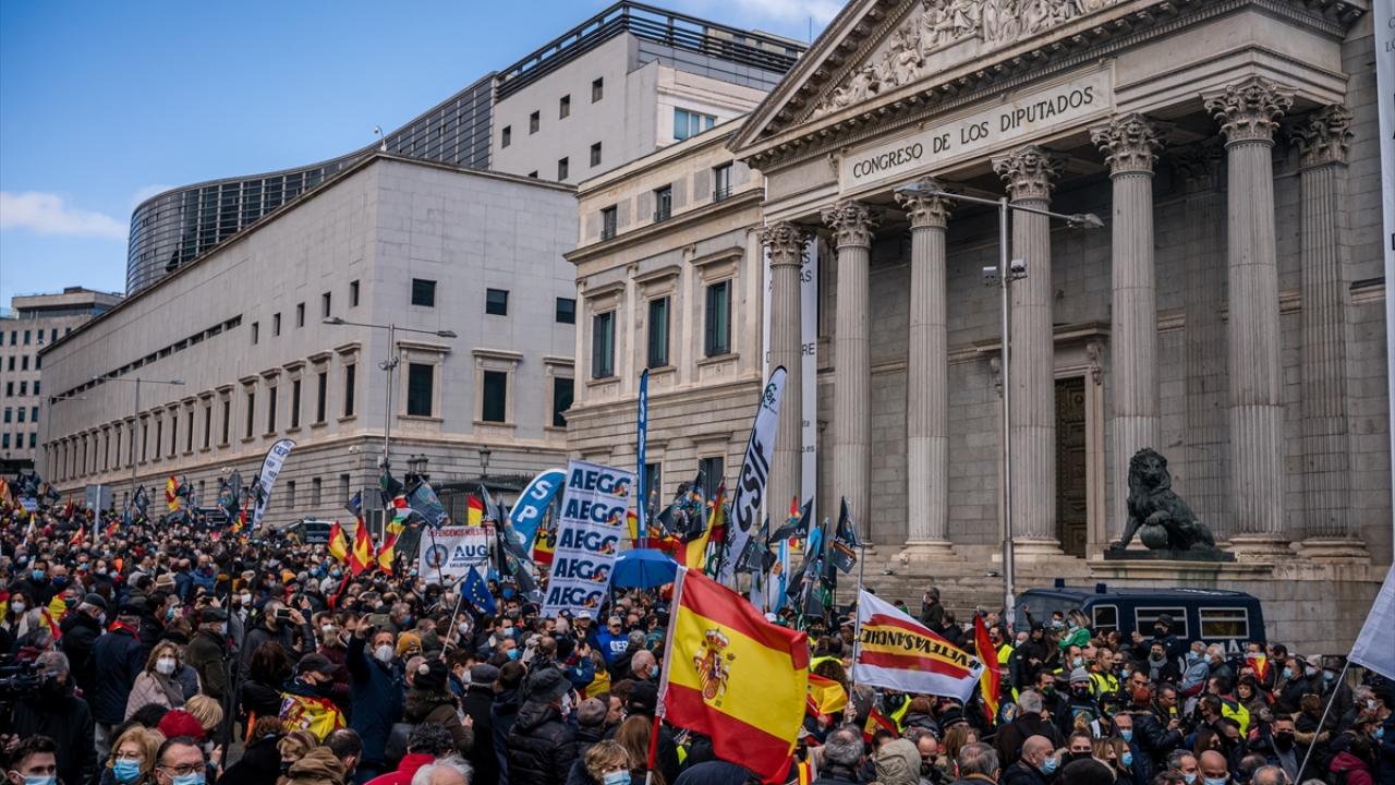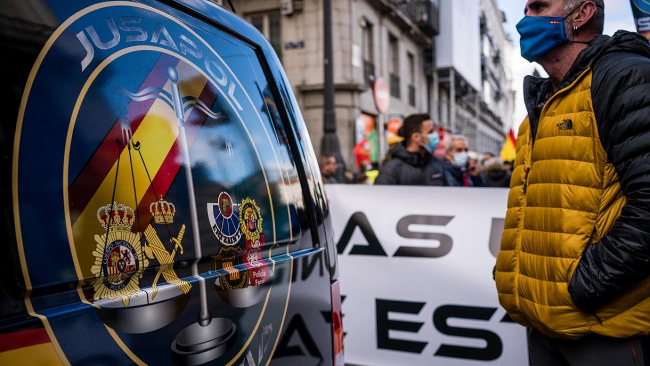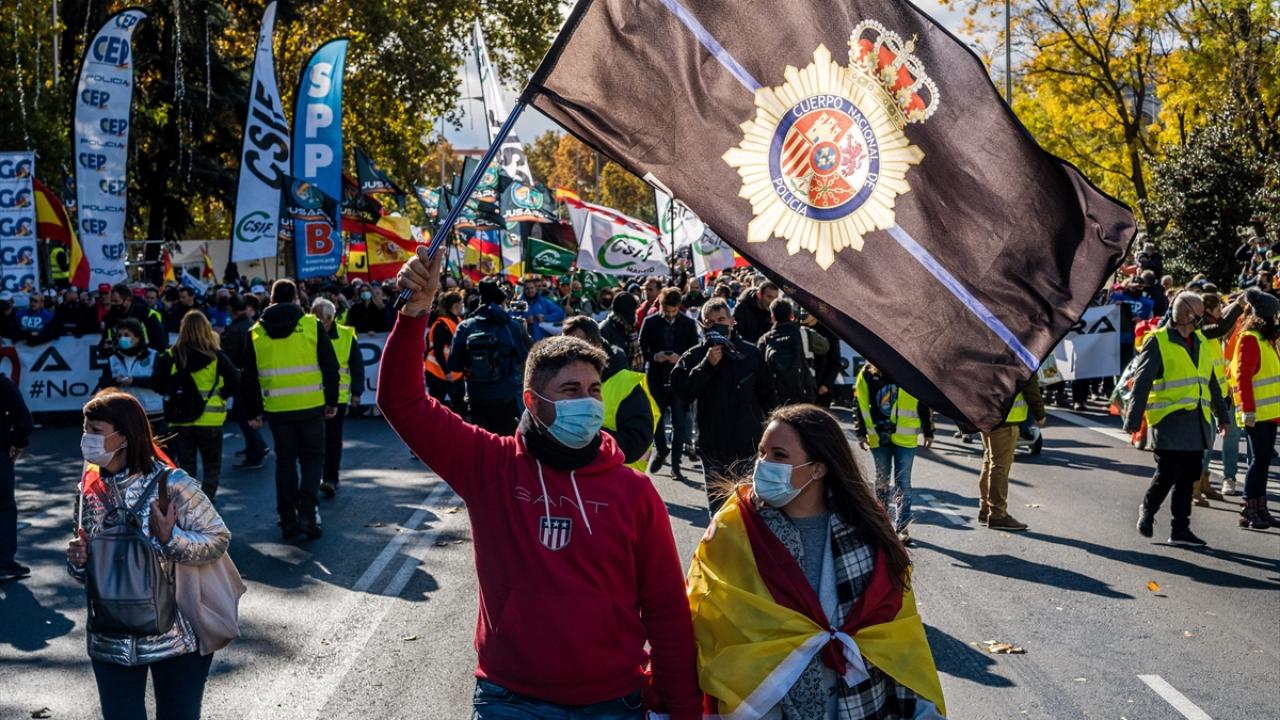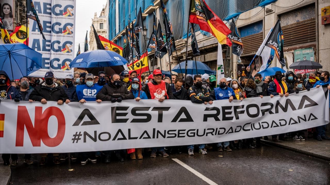 İspanya'da sol koalisyon hükümetinin gösterilerde güvenlik görevlilerine tanınan bazı hakları kaldırmaya yönelik girişimi, başkent Madrid'de polis ve jandarmalar tarafından protesto edildi.