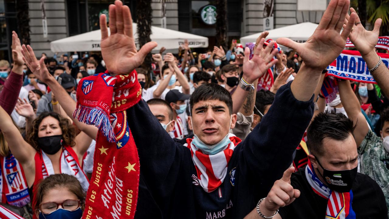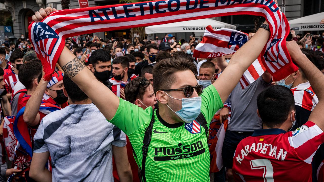 Madrid`deki Neptün Çeşmesi önünde toplanan Atletico Madrid taraftarları da şampiyonluğu kutladı.