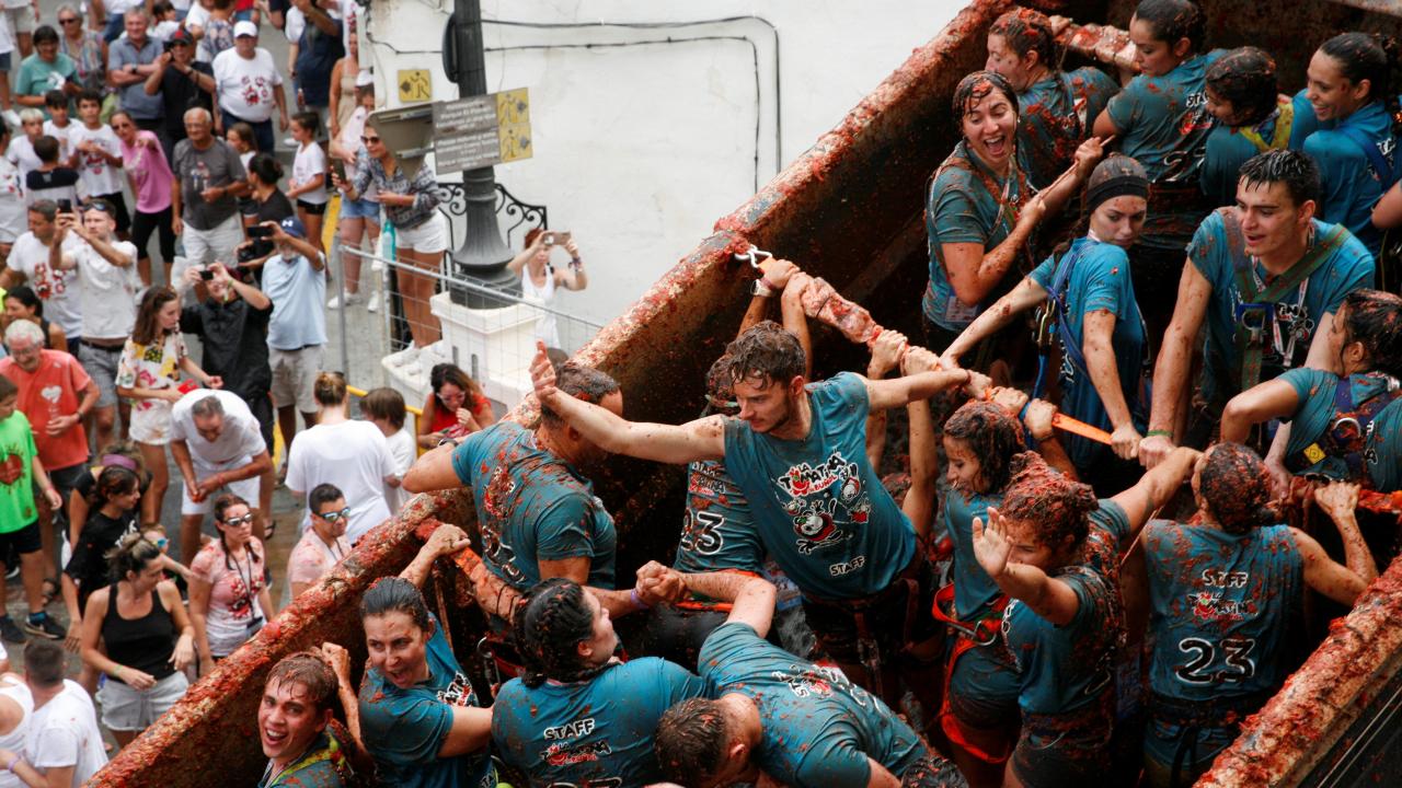 Domates savaşı sonunda sokaklar ve kasabadan geçen nehir kırmızıya bürünse de temizlik görevlileri tazyikli sularla kısa sürede sokakları eski haline getirdi.