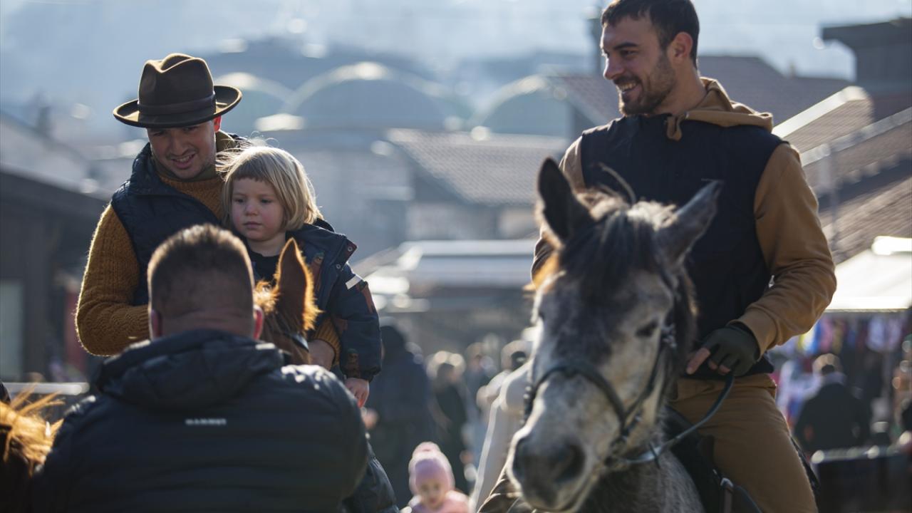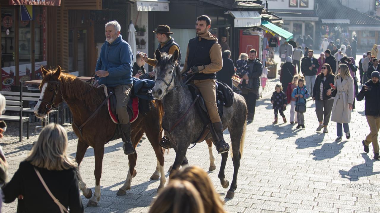 Yolculuklarının duraklarından biri olan Saraybosna`ya da uğrayan hacı adayları, tarihi Başçarşı`yı at sırtında gezdi. Hacı adayları, şehirde bulunan turistler ve vatandaşlardan büyük ilgi gördü.