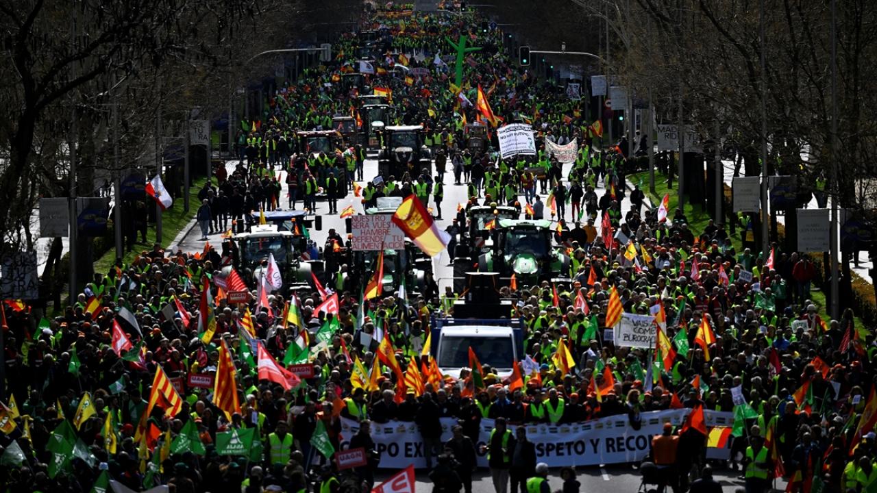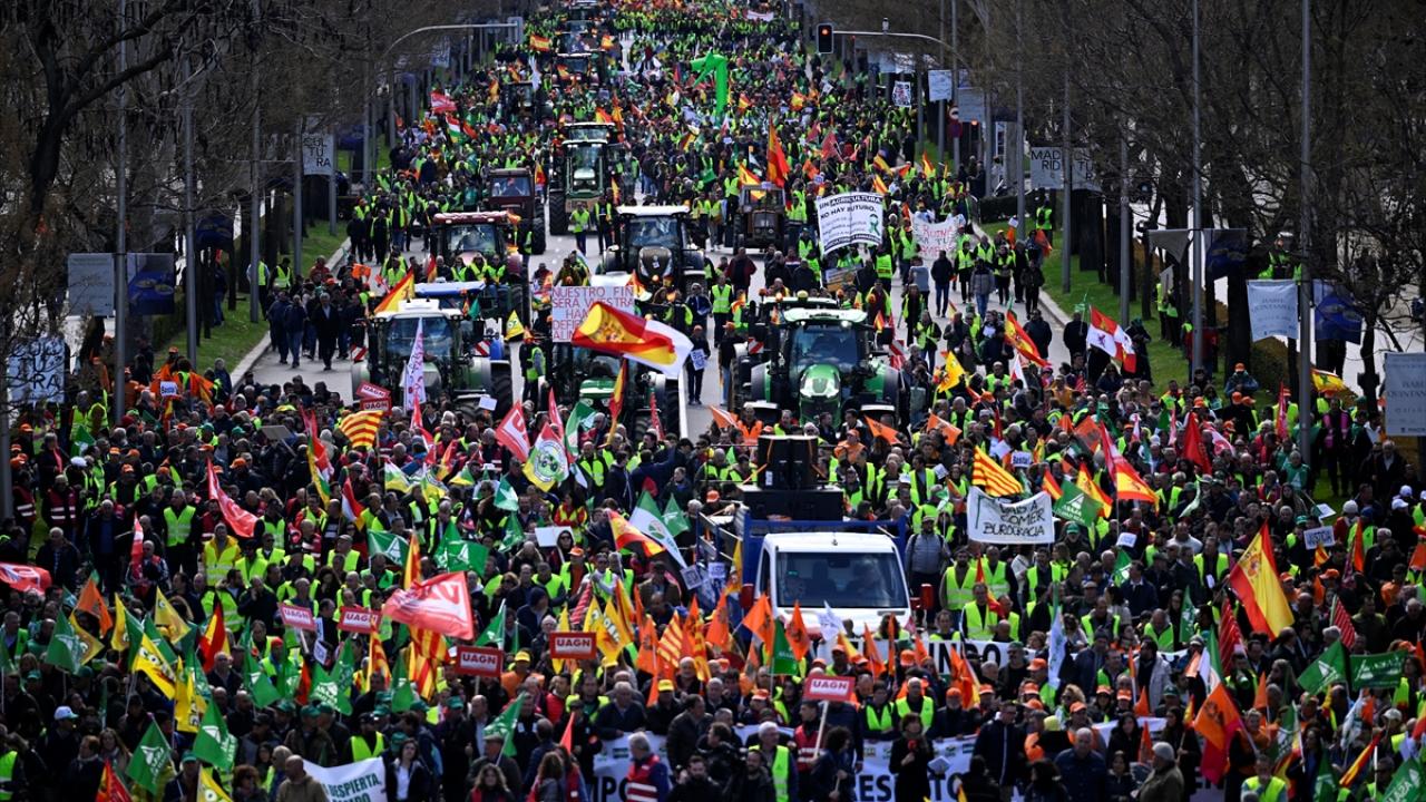 Çiftçilerin bağlı olduğu üç büyük sendika, Asaja, COAG ve UPA, Brüksel`de bu hafta yapılacak ve AB Ortak Tarım Politikası ile ilgili bazı kararların alınmasının beklendiği toplantı ve yarınki Bakanlar Kurulu`nda hükümetin alması öngörülen sektörle bağlantı kararlardan dolayı protestolarını başkent Madrid`de yoğunlaştırdı.