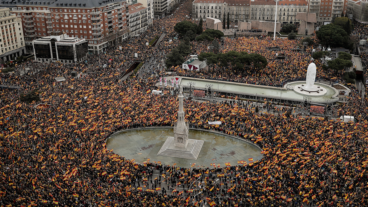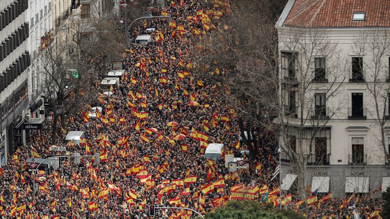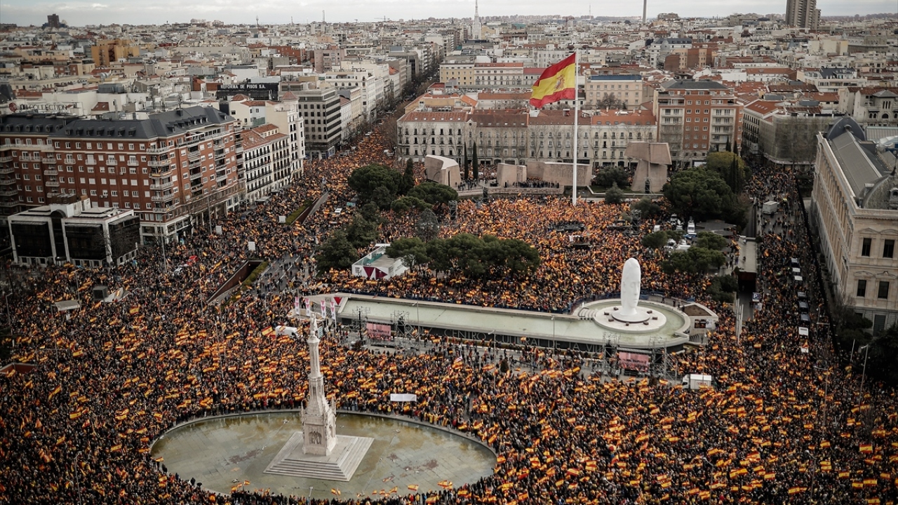 Ana muhalefetteki Halk Partisi (PP) ile Vatandaşlar (C`s) ve aşırı sağ görüşlü Vox partilerinin çağrısıyla başkent Madrid`deki Colon meydanında toplanan binlerce kişi, ellerinde İspanyol bayrağı ile Katalonya`daki ayrılıkçı girişimlere karşı "artık yeter" mesajı verdi.
