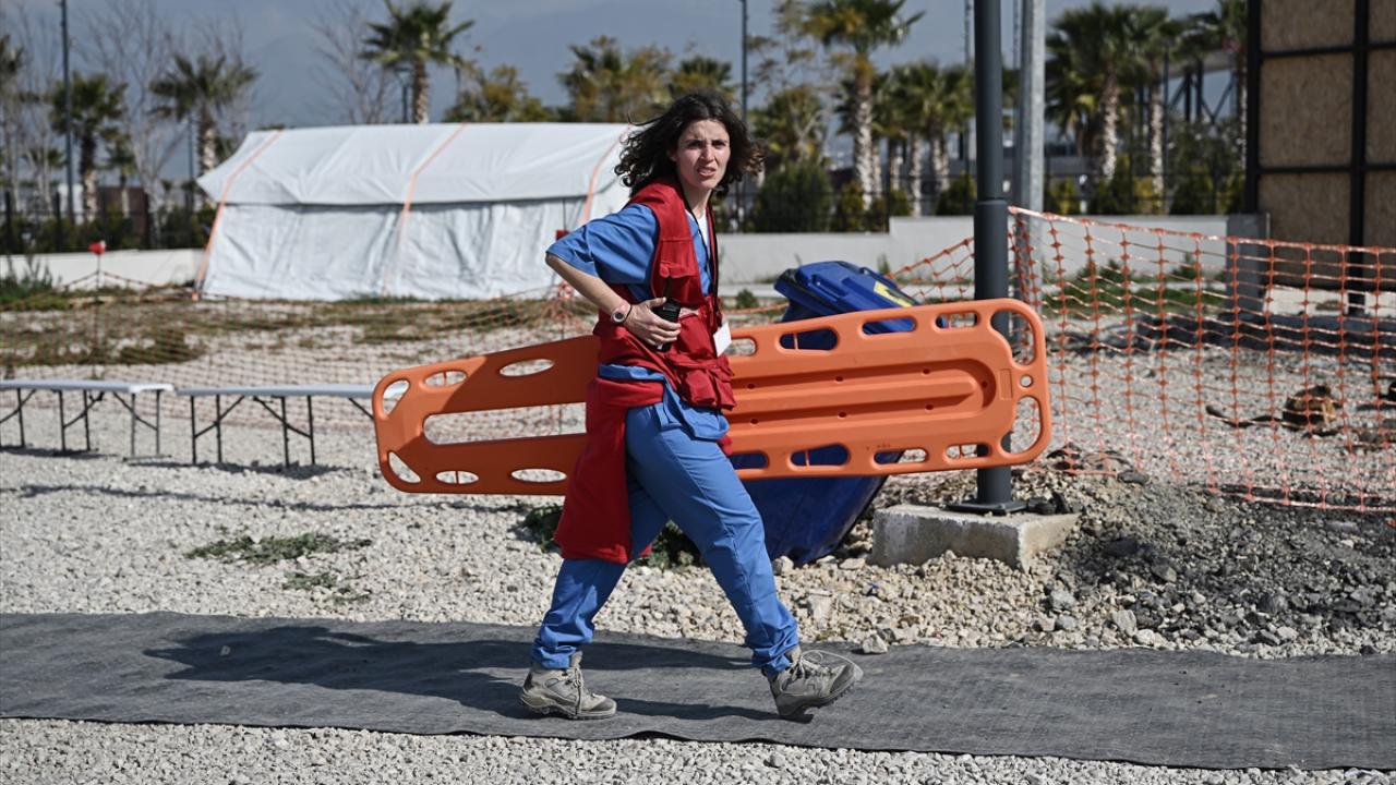 Kahramanmaraş merkezli depremlerin ardından Hatay'ın İskenderun ilçesinde sahra hastanesi kurarak afetzedelerin yardımına koşan 84 kişilik İspanyol ekibi, yeni görevlilerin gelmesiyle nöbet değişimi yaptı.