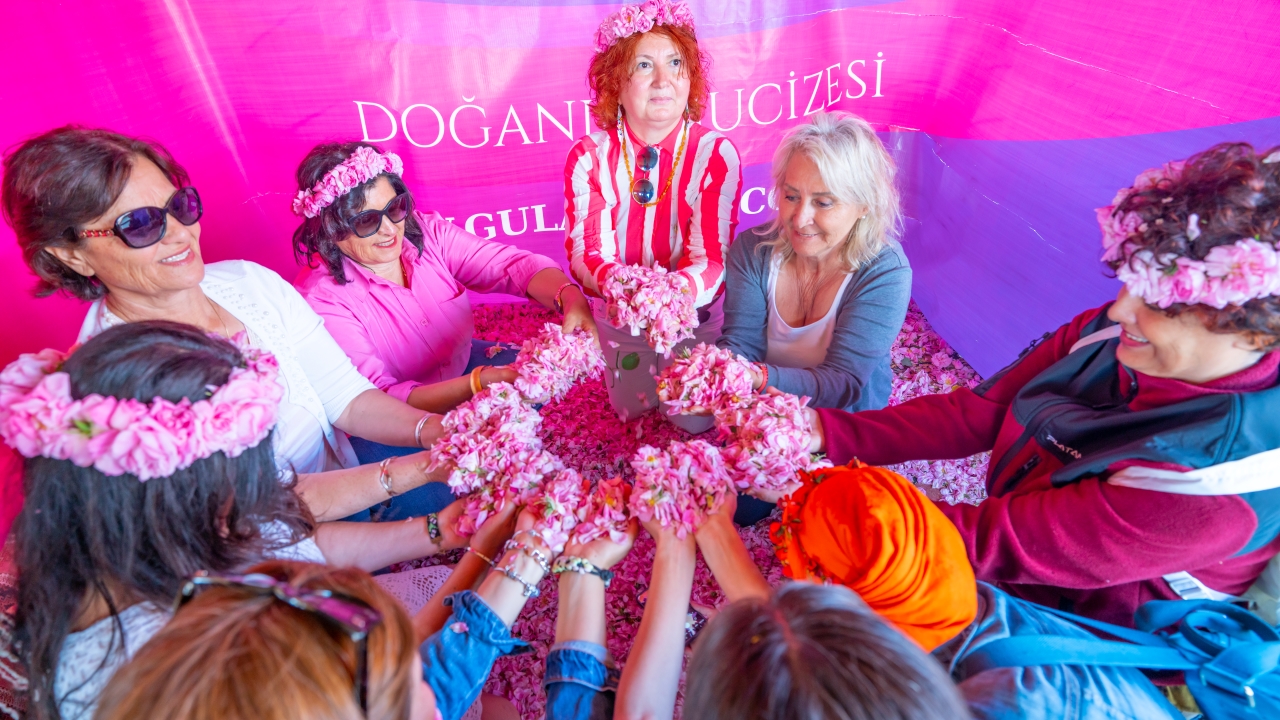 Güneşin kendini hissettirdiği saatlerde gül bahçelerinden ayrılan işçilerin yerini ise Türkiye`nin her yerinden gelen ziyaretçiler alıyor.